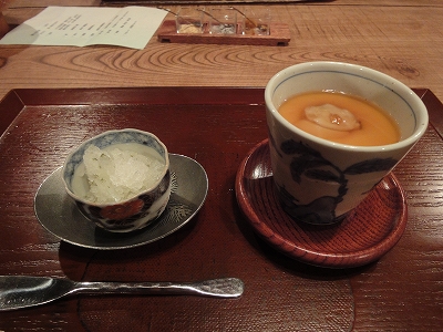 大葉のグラニテとメニューにはありませんでしたが、女将からの心付けの茶わん蒸し