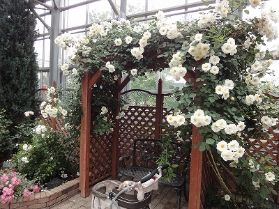 GWあけて、1週間前の母の日に宿泊の予約を入れようとしたら・・・なんと、満室。^_^; 13日頃、バラが見頃になったと聞いていたので、できれば母の日にお出かけしたかったのですが、そんなこんなで1週間延期した20日、おでかけしました。 ![]() まずは、薔薇を見に「はな阿蘇美」へ向かいました。 ![]() 日曜は大型バスの団体さんがたくさん来るので、それを避けて10時半くらいに入園です。 ![]() ローズガーデンが大改造されたのをブログで読んでいたので、どんな風に変わったのかワクワク。 ![]() ローズガーデン前にはバラの苗を販売する建屋が復活してました。 ![]() 以前は広場に入る前に料金を取られましたが、この日はドームの玄関前で支払うようになっていました。 外のバラがまだまだ見頃を迎えていないからだったのかも? ![]() 外のローズガーデンはドームへのアーチとサークルガーデンを除いて、広場へ変身。 ![]() 以前のドーム前に広がるローズガーデンもよかったですが、犬連れにはこちらの方がゆっくり散歩ができていいと思います。 ![]() ![]() キャンディもこっちの方がうれしそう♪ ![]() この日は晴れはしませんでしたが、3時過ぎまで雨は降らなかったし、5月とは思えないくらい気温も低く・・・というより寒いくらい。(爆)犬連れにとっては、灼熱の暑さになるよりマシですが・・・ ![]() 外のバラの見頃は今月末か来月に入ってって感じですね。 ![]() ![]() アーチにはアンジェラが咲き始めてます。 ![]() 料金400円を支払って、ドームの中へ。 ![]() ![]() ![]() 外のバラをドームの中でかなり移動させたそうなので 前に比べるとドーム内のバラがたくさんになり、見ごたえがありました。 ![]() その分、通路が狭くなったので・・・ちょっとカートは転がりにくくなりましたが。(^_^;) ![]() ![]() ![]() ![]() ![]() ![]() 先週、見頃を迎えたと聞いていたので、あまり期待をせずに行きましたが、予想を反して、なかなかよかったです。 ![]() ![]() ![]() ![]() ![]() ブログに書かれていた新しい仲間、ヤギさんはドームの横でお食事中でした。 ![]() 11時を過ぎる頃には、ドーム内の人も多くなり・・・ 11時半頃、駐車場に出てみると・・・大型バスがズラ〜っと並び、観光客が次から次にローズガーデンへ入って行かれました。 ![]() 私たちが到着した時には、レストランのテラスもガラガラでしたが、帰る頃にはテラス席も満席でしたよ。 |