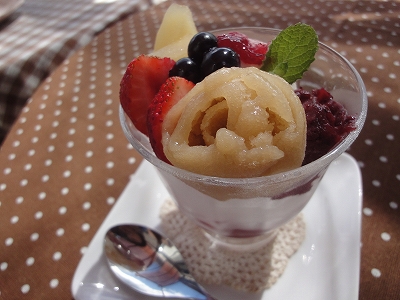 元々は、翌日に南小国方面に行き、あっぷるみんと農場に寄って、その後、ランチして帰る予定にしてましたが、どうも翌日は朝から雨になりそうだったので、急きょ、1日目に行くことにしました。 本当ならチェックインまで、クーラーのきいたガンジーファームのドッグカフェでの時間つぶしするつもりで、前日に営業しているか確認もしてたんですけどね。(爆) そうそう、ガンジーファームのドッグカフェですが、土日祝日は営業になっていますが、担当者がお休みの時はカフェは開けてないことがあるそうです。 (だから去年の祝日の日に寄った時、営業してなかったんだと納得。) 前日の土曜日に電話をしても、担当者に確認しないと翌日の日曜日にお店が開いているかわからないと言われたので 「え〜、じゃあ、当日にならないとわからないってことですか?」というと 「いえ、担当者にちょっと確認してきますので、折り返しお電話させてもらってもよろしいですか?」 と一旦、電話を切って、折り返し連絡をもらい、今回は営業していることは確認済だったんですけどね〜またの機会にということになりました。 ![]() で、そんなこんなで到着したのはあっぷるみんと農園。 ![]() 駐車場は風のもりを抜けた、ちょっと先にあります。 ![]() 車を停めたら、坂道をちょっと下って降りていくと・・・ ![]() 建屋があります。 ![]() ブルーベリー狩りは500円。持ち帰りは100g 100円です。 ![]() ブルーベリー狩りなしの購入は200g 500円です。 私が知ってる限りではブルーベリーの持ち帰りではここが一番お安いと思います。 ![]() 「ちょっと増やしてあげますね♪」と料金はそのままで嵩を増やしていただきました。 ありがとうございました。(#^.^#) ![]() ブルーベリーを買った後はお隣の風のもりでお茶休憩。 ![]() ![]() いつ来てもお店の名前通り、風が通って気持ちいい場所です。 ![]() 母はデザートとコーヒー。 ![]() ![]() 私はバラ色のパフェ。 バラのパフェにはどぶろくプリン以外のジャーシーアイスやシャーベットなどが入ってます。シャーベットがバラの形していて、かわいい。(^_^) 去年、風のもりに来た時に生ブルーベリーを買ってから、すっかりここのブルーベリーが気に入り、今年も買いにきましたが、「来年も買いに来る〜」と今から来年の話をしている母なのでした。(爆) ![]() 念願のブルーベリーを買った後は、キャンディたちの夕ご飯を調達しに、Cafe BoiBoiに向かいました。 ![]() 予定外に南小国まで足を延ばしたため、チェックイン予定の15時を過ぎましたので、この日は冷凍のままで受け取りました。 ![]() BoiBoiを出たあとはこの日のお宿へ向かいます。 |