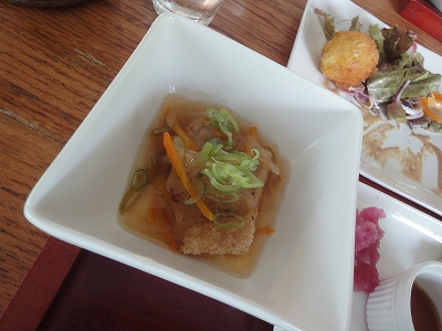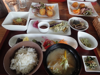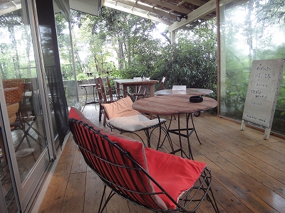 天気がよければ久住町にある和食のお店でランチを食べる予定でしたが、テラスで食べれそうにもなかったので、予定を変更して九重の方まで行くことにしました。 ![]() やまなみ牧場は建物やレストランに入らなければ、敷地内はペットOKですが・・・ 雨が降ってますから、今回はブルーベリー買いだけに立ち寄りました。 ![]() 私とキャンディたちは玄関の前で待って、母だけがお店の中に入ったのですが・・・ ブルーベリーを探し切れず、結局、何も買わずに出てきました。(^_^;) お店の方に聞けばよかったのに・・・小心者の母です。(爆) まあ、前日にも買ってるので、見つけられれば買うという気持ちくらいだったのかもしれませんが。 ![]() 雨降りでもランチができるところは? と思いついたのが「Weed」。 テラスの軒が広いので、大丈夫かもしれないと思い、電話してみると「OK」の返事だったので、Weedに行くことにしました。 ![]() ![]() 平日の雨降りということもあり、ランチタイムでしたが、店内は私たちだけ。 (その後、1組いらっしゃいましたが・・・) ![]() ペット連れは本来、外のテーブルとテラスだけなんですが、雨が降っていて、他のお客様がいないこともあって、お店の方のご厚意で店内のテーブルに座らせていただきました。 ![]() でも、かなり強めの雨風でしたが、テラス席も真ん中の席なら、テラスでも大丈夫だったと思います。(但し、時々、すっごい風が吹いて、音がゴーッて言いましたが。^_^;) ![]() ランチを待っている間は、キャンディとラナを一緒にテラスで風に当たっていると・・・ ふと、緑色の物体が目に留まりました。 椅子の脚にペタッてくっついていたんですが・・・ ![]() よく見ると・・・カエルさんでしっ! か、かわいい。 初め、作り物かと思ってしまった。(爆) ![]() テラスの椅子に座って、風に吹かれる木を見ながら、ランチが出来上がるのを待ちます。 やっぱり、外の風って気持ちいいな〜 ![]() そうこうしている間に食事の用意ができました。 ![]() Weedは去年の秋、来ることは来たんですが・・・ 祝日だった為、お客さんがいっぱいで時間がかかりそうだった為、パスしたので ランチするのは今回が初めてです。 ![]() いやあ、こんなに豪華とは思いもしませんでした。(爆) ![]() 並んだ品数にびっくり。 前日にランチした「豊後有機農園」と同じく、こちらもオーガニック。 今回はブルーベリーとオーガニック三昧の旅になりましたね。(^_-)-☆ ![]() この料理だったら、注文してから多少待たされることもうなずけます。 前日同様、こちらのランチも母はいたく気に入られたご様子で・・・(爆) 「また、食べに来る〜」大満足だったようです。 ![]() デザートと一緒に出たのは、穀物コーヒー。 ![]() キャンディは少し眠たくなってきたみたいで・・・ ![]() テーブルの下でおとなしく、眠ってくれました。 ランチを済ませた後は一路、自宅へ。 ![]() 途中、三愛ドライブインに立ち寄り・・・ ![]() 行きがけにお願いしていたブルーベリーを受け取りにT-Shopへ立ち寄ると、安心院の「王様のぶどう」が格安で販売していたので、ブルーベリーと一緒にぶどうを買いました。 ![]() そして、毎度おなじみのブルーベリーとカリカリ桃のソフト。 2日目はあいにくの雨になりましたが、そのおかげでおいしいランチも食べられましたし、結果オーライかな?って思ってます。 いい誕生日旅行できてよかったです。 |