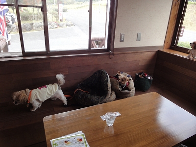 10月14日,15日、数日遅れになりますが、母の77歳の誕生日祝いで一泊旅行に出かけました。1日目は久住町→九重町→湯布院泊です。 ![]() 行く途中、さつまいもとにんにくを買いに清川の道の駅に立ち寄りました。 ![]() そして、10時半頃にガンジーファームへ到着。 ![]() 母は買い物しに売店へ。 ![]() 私とキャンディとラナは一足先にドッグカフェへ入り、休憩です。 ![]() 営業中の店内に入るのは初めてです。 まだ11時前ということもあり、カフェは貸切。(爆) ![]() 「これこれ、キャンディ、誰もいないからって、勝手に動いちゃダメですよ。」 ![]() 奥の方にはゆったりとしたソファの席もあります。 ドッグカフェですから、もちろん、わんこOK。 カウンターの中にはお店のワンちゃん 2kgのかわいいヨークシャテリアさんがいました。ラナと違って小柄でかわいい〜 ![]() しばらくして、買い物を終えた母が来たところで、コーヒーを注文。 ![]() クリームチーズとお友達へのお土産用のブルーベリージャムを買ってきてました。 ![]() 他にお客さんがいなかったので、カフェの方としばらくお話したんですが、湯布院に出来た湯布院ガーデンホテルってガンジーファームと同じ系列なんですね。知らなかった〜 だから、ここのドッグカフェにあるわんこ用のハンバーグやチキンはガーデンホテルでも食べられるそうです。(但し、ガーデンホテルのカフェにはわんこ用のケーキはありません。) ![]() メニューは少ないですが、夏の暑い時期、冬の寒い時期、犬連れで室内休憩できるのは助かります。ただ、土日祝日のみ営業で担当者がお休みだったらカフェもお休みになる場合があるというのはちょっと残念ですが。(爆) ![]() わんこメニューです。 ![]() そして、こちらが人用メニュー。 尚、ガンジーファームで一番人気のソフトクリームはカフェでは作っていませんが、持ち込みはOKでした。 又、わんこ用のハンバーグプレートやロールチキンプレートはお持ち帰りすることもできたので、この日の夕食に買わせてもらいました。(^^)v ![]() ガンジーファームの駐車場入口には「ガンジーファームへよ〜こそ〜」と大きな声で出迎えてくれるお兄さんが立ってるんですが、大きな声を出すせいか、ラナがお兄さんが叫ぶ度にガゥガゥ。^_^; するとお兄さんが「俺、どの犬からも嫌われるんだよね〜。うちにも犬がいるのに嫌われてるし。(笑)」と笑って話してくれました。 ラナがガゥガゥ言ってごめんね。お兄さん♪ |