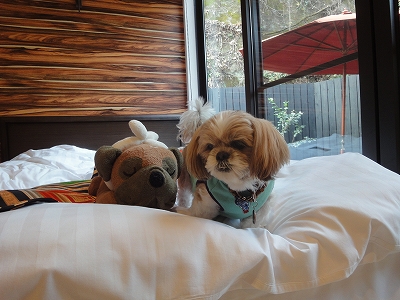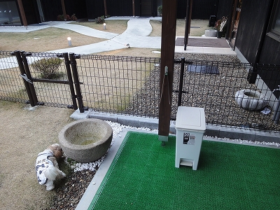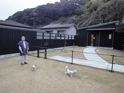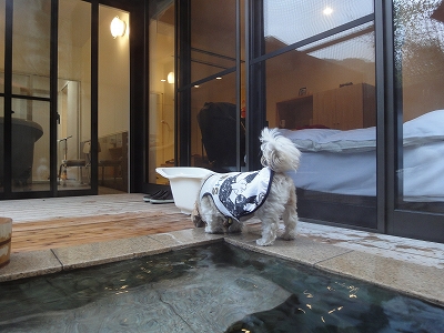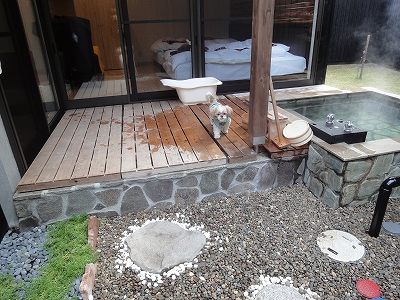![]() 翌朝、朝食を食べに昨日の食事処へ向かいます。 ![]() ![]() 夕食と同じお部屋で朝食です。 ![]() こちらが朝食。 ![]() 一番左にあるのは「りゅうきゅう」です。おいしかったですよ。(*^^)v ![]() 生姜入り牛乳です。体が温まりそうです。 ![]() あと蒸し野菜と焼き魚(鯖)。 ![]() この日は蒸し野菜でしたが、湯豆腐の時もあるようです。 ![]() ラナは私の横の椅子へ。キャンディは窓越しに外を見ながら、床に座りました。 ![]() 「いい子にしててね〜♪」 ![]() 宿のHPではテーブル横の壁が開いた状態で紹介されています。 個室の方がまわりを気にせず食事ができるからいいですが、壁で仕切る分、スペースは狭くなります。でもエアコンもついているし、小型犬連れだったら、問題ない広さだと思いますよ。 ![]() 食事のあとはドッグランで一休み。 ![]() 白いダストBOXが共有のドッグラン用のウ○チBOXです。 ![]() 宿泊された方の口コミでよく話題に上がっている「となりの家が見える」というのがこんな感じです。部屋に入ってしまえば、となりの住宅はほとんど気になりませんでしたが、ランにいる間はちょっと気になりますね。 ![]() 特にこの写真で母が立っている横にあるお宅の2階のベランダには洗濯物が干されているので、洗濯物は丸見えになります。・・・というか、私たちがランにいた時に、洗濯物を仕舞われるのにベランダにいた奥様と目があった時はお互い、ちょっと気まずかったですね。(爆) ![]() 部屋に戻ったら、露天風呂へ。 ![]() キャンディは風呂桶の中のチェックに余念がありません。(?≧?≦) ![]() 露天風呂の横のテラス(というかスノコ)から砂利の庭への段差はこんな感じです。 若いわんちゃんや中型犬なら上り下りできると思いますが、小さいわんちゃんはちょっと危なそうな高さなので、できれば飼い主さんが抱っこでおろしてあげた方がいいと思います。 ![]() 露天風呂側はもっと段が高くなりますから、ご注意を。 ![]() そのあと、朝の珈琲を飲んで・・・ ![]() キャンディと横綱くんの記念撮影をして宿を後にしました。 (基本的に我が家はわんこをベッドの上に上げないのですが、こちらは布団への粗相は料金内ということでしたので、【あえて】乗せて写真撮ってきました。私の宿への小さな反発ってところでしょうか?笑) |
