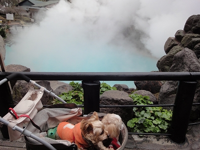 湯布院からの帰る途中、最後に海地獄に寄りました。 ![]() 大きな「海地獄」と書かれた看板のところから入ると広い無料駐車場です。 車を停めたら、海地獄、山地獄、鬼石坊主地獄などが歩いて回れます。 ![]() ここまで来て地獄の一つも見ないのもなんなので、大きな売店がある海地獄へ入りました。 ![]() ここも血の池地獄同様、売店を通った先に地獄があります。 必ず、売店を通らせるあたり、商売魂を感じます。(爆) ![]() 「海地獄ってもっと青々してたと思ったけど、まあ、こんなもんか。」 ![]() 子供の時に見た記憶なんていい加減なもんですからね。(^_^;) なんか、もっと青々していたような記憶だったんですが、今見ると青というよりコバルトグリーンって感じですね。 ![]() キャンディ&ラナ「これが地獄ってもんなのね。」 ![]() 今の季節はこんなに近くで写真を撮っても平気ですが、夏場だったらきっと暑いんでしょうね〜 ![]() ・・・なんてことはキャンディとラナにとってはどうでもいいようです。(^^; ![]() 海地獄を出たあとは鬼石坊主地獄入口前にある「こびり」でとある物をお買い物。 ![]() 普通のカップケーキなんですが・・・ ![]() チョコ坊主といいます。ぼこっ出る坊主地獄を真似たケーキです。 血の池プリン同様、いい土産話のネタになりそうなケーキです。(爆) ![]() その場で食べるにはまだお腹がいっぱいだったので、持ち帰りしました。 お持ち帰りしたい時はお店のおばちゃんに言うと冷凍の物をくれますよ。 自然解凍で2時間くらいで食べ頃になります。 ![]() ぼこっと出た坊主地獄っぽくないですか?(?≧?≦)てへぺろ ![]() 中はチョコがめちゃくちゃ甘いです。(^^; 甘いのが好きな私が甘いというんだから、相当甘いと思って下さい。(爆) ケーキの下の方にはバナナが入ってます。 最後に海地獄の外の売店でエスプレッソとカフェラテをもらって、一路、自宅へ。 ![]() カフェラテを飲んで「ホ〜」としている母を珍しそうに見上げているキャンディの姿にちょっと笑いながら、今年の犬連れ旅行も締めとなります。 来年は2月のキャンディの誕生日で久住 小笠原へ行くのが旅行初めの予定です。 予約している3日は1年の中で最低気温の平均が最も低い日ですが・・・凍結とかないといいんですけどね。 と言いながら、雪を見ながら温泉に入るってのも一度してみたいと思ったりもしますが。(^^; |