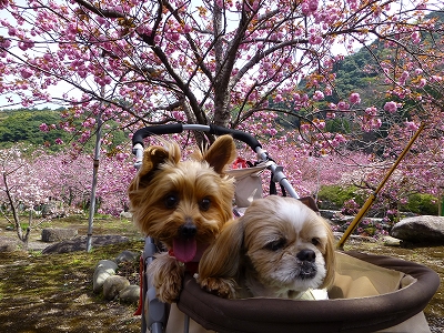 4月5,6日で毎年恒例の別府 検診旅行へ行ってきました。 本当は・・・今年のGWは30日と2日、予定がなくても有給消化の予定で(1日はメーデーで会社休)平日に3連休取れるので、この時に病院に行こうと前々から予定していたのですが、検診先の病院が病院を新築しまして、今年のGWはそっくりお引越しで外来をお休み。 「じゃあ、桜でも見ながら、別府に行こうか」と5,6日に予約を取りました。 ・・・が!今年の桜は例年にない早い開花で、ソメイヨシノはすでに葉桜。(爆) でも、転んでもただではおきないのがちびまるでして。(^^; 「ソメイヨシノがダメなら、その後に咲く花を見に行けばいいじゃん!」 ![]() ・・・ということで、最初に寄ったのは、例年なら来週あたりが見頃になるはずだった 「一心寺のボタン桜」へ。 ![]() ソメイヨシノ同様、こちらのボタン桜の開花も史上最速です。 ![]() 1日に開花宣言、前日の4日で五分咲きということだったので ![]() 去年の満開ほど期待しないように・・・と母に釘をさして訪れましたが ![]() 行ってみると八分咲き以上と言っていいくらい見事でした。 ![]() 史上最速の開花ということで、開花情報をGETとしている方も少なかったのか 晴天でほぼ無風の最高のお花見日和のわりに、人がとても少なくて、ゆっくり眺めることができました。 ![]() 「綺麗だね♪」 ![]() 今年もキャンディとラナと一緒にここの桜を見ることができて、本当によかった。 ![]() かわいいピンク色もいいですが・・・ ![]() こちらには緑色の桜「御衣黄(ぎょいこう)」という大変珍しい桜があります。 咲き始めは葉っぱと同じくらいの緑色で散り始め頃に色を変えて散っていきます。 ![]() 本堂の裏のお墓の横にある細いこの木が御衣黄の木です。 花が緑なので、一見、桜のように見えないので「あら、まだ咲いてないわ」と見落とされないようにご注意を。(笑) ![]() 緑の桜の次は黄色の桜。鬱金(うこん)桜と言います。私はこの花が好きです。 ![]() 写真ではわかりにくかもしれませんが、去年より桜の色が濃く、鮮やかに感じました。 ![]() こぼれるように咲く満開の時も見応えがありますが、葉っぱがまだ少なく、満開ちょっと手前の八分咲きは、咲く寸前の蕾の濃いピンク色がより桜の色を鮮やかにしているような気がします。 ![]() 桜のピンクで染まった中を歩くキャンディ。 ![]() ![]() 人が少なかったので、これだけの桜をキャンディ、独占してます。(爆) ![]() 薄白いピンクのソメイヨシノや濃いピンクの河津桜も好きですが、小さな手鞠のようなポンポン桜が八重桜が一番好きかも。 ![]() 亡くなったうちの父が八重桜を好きだったんですよね〜 ![]() 一緒に見てるかな。 ![]() ![]() ![]() ![]() ![]() ラナ「来年も楽しみにしてるよ♪ 桜さん」 ![]() 翌日の土曜日は雨、日曜は風が強くなったみたいで・・・ ![]() この日を狙って予定を立てていたわけではなかったのですが、ちょうど見頃の時期と重なって、よかったです。 |
