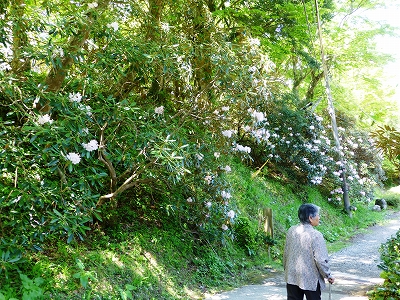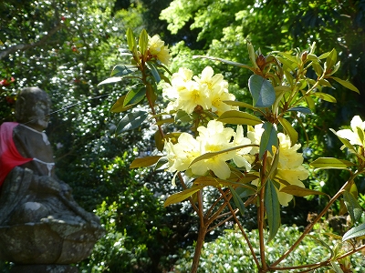 国道57号線から657号線を通り、神角寺へ向かいました。 ![]() 「そろそろかな?」と思った頃、車の窓からこんな景色が見えてきます。 ![]() 神角寺です。入口前は広い駐車場です。 ![]() ![]() しゃくなげは見頃をちょっと過ぎてるとわかった上で来たんですが 日陰側ではまだ綺麗に咲いている木も結構ありました。 ![]() ![]() ここのしゃくなげの木はみんな大きい。 ![]() 母が見上げているのもしゃくなげの木です。 すでに花は終わっていましたが「こんなに立派に育つのね〜」としみじみ眺めてました。 ![]() 門をくぐるとかわいいお地蔵様。 ![]() 黄色のしゃくなげはちょうど見頃でした。 本堂周りにも大きくて立派なしゃくなげの木がたくさんありましたが、残念ながら今年の花は終わってました。 ![]() 展望台と書かれていたので、私とキャンディとラナで行ってみました。 その間、母はゆっくりとお地蔵様鑑賞。 一心寺に行った時もそうですが、お地蔵様のお顔を見るのが好きみたいです。 うちの母。(^^;) ![]() キャンディは途中まで、スリングに入って上がり、展望台のちょっと手前から歩きました。 ![]() ![]() 写真では伝わりにくい(というかカメラマンの腕が悪い)ですが めちゃくちゃいい眺めです。きっと若葉の季節の今だから、余計に山の緑が鮮やかに見えたのかもしれませんね。 ![]() 風がとっても心地よい。 ![]() 駐車場の端の方には、八重桜の花が少しだけ残ってました。 豊後大野は延岡から1時間半ですが、花の季節は延岡と10日から2週間くらい差があるように感じます。延岡ではとうに咲き終わっているこでまりやモッコウバラも今が見頃って感じでしたから。 ![]() 展望台を除けば、比較的、勾配が少ないので、母のように足が弱い人には 五ヶ瀬町の三ケ所神社よりしゃくなげ鑑賞がしやすい感じです。 |