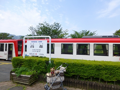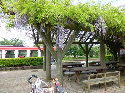 5月4日、阿蘇の高森に出かけてきました。 GWの阿蘇は渋滞が必須ですが・・・延岡から高森までは渋滞知らずです。(*^^)v ![]() 途中、休憩で奥阿蘇物産館に立ち寄ると・・・駐車場に太鼓がずらり。 この日はイベントがあるみたいで、やまめやいも田楽の串の屋台も準備中でしたよ。 ![]() そして、高森駅へ。駅舎正面にはSLが展示されてます。 ![]() 南阿蘇鉄道の始発・終点駅です。ここの鉄道はかわいい駅舎がたくさんあります。 高森駅もかわいいでしょ。 ![]() 駅舎の横を通り、裏にまわると・・・ホームへ行けます。 ![]() 到着した時、運良く電車が停まってました。 ![]() 電車はここを出発して、立野へ向かいます。 ![]() そして、ホーム横に藤棚。 ![]() 藤の花は8分咲きと言ったところで、綺麗でした。 ![]() まだまだ蕾がたくさんありましたから、数日後は満開でもっと綺麗になると思います。 ![]() ![]() ![]() 藤棚の向こうには広場があり・・・ ![]() 奥の方には屋外ステージがありました。 ![]() キャンディとラナはこういう場所が一番楽しそう。 ![]() ちまたはGWで混雑しているようですが、ここは渋滞や混雑とは無縁でした。 疲れたら座れるベンチもすぐ近くにありますし、藤の花を見ながらクローバーの広場で遊んで、犬連れにとっては大変過ごしやすいところです。 |