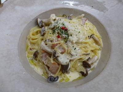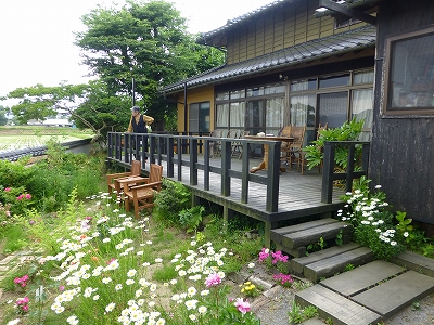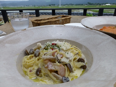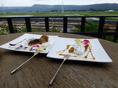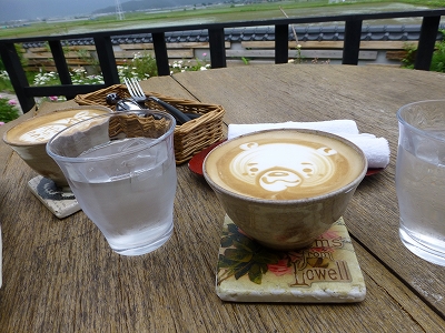 57号線の蔵原交差点を北へ曲がり、ちょっと細めの道を道なりに進み・・・ ![]() 看板を左折したところにある隠れ家のようなカフェが「茶蔵カフェ」です。 ![]() 行きつくと広々と田畑が広がり、一機に開放されたような感じで ![]() 阿蘇の外輪山が目の前に広がります。 ![]() 趣のある入口を通って・・・ ![]() すぐ右手にあるのが「さ〜蔵」(和食)です。 ![]() その奥の左手にひっそりと隠れるようにある建物が・・・ ![]() 「茶蔵カフェ」(洋食)です。 ![]() こちらはトイレ。「厠」と書かれてある感じがいいですね。 ![]() ![]() そして、この先を右に入ったところにあるのが・・・ ![]() 犬連れで食事できるテラス(展望デッキ)です。 ![]() ![]() デッキの下には春の花や薔薇が植えられて、綺麗♪ ![]() 目の前には田植えが終わったばかりの田んぼと遠目に外輪山。 ![]() デッキの奥には直径1mくらいありそうな見事な大木がありました。何の木なんだろう? そして、その横にも立派な百日紅の木。夏になると綺麗に咲くんだろうな〜 ![]() デッキにいると「ウッオホホホホ ウッオホホホホホホホ〜ッ」とちょっと面白い泣き方のわんちゃんの声が聞こえてきました。姿を見ることはできませんでしたが、声から「お茶目な柴犬さんかな?」と想像したり。(#^.^#) ![]() さて、ランチ(1,200円)ですが、メイン料理はパスタ、リゾット、ピッツァのメニューを選ぶことができます。 予約の電話をした時に「ランチは和食と洋食になりますが、どちらがよろしいですか?」と聞かれたので、このテラスで「さ〜蔵」の和食を注文することもできるみたいです。 ![]() 飲み物は2人ともカフェラテを注文。 ![]() 母はトトロ♪ ![]() 私はくまさん♪ 飲むのがもったいない(#^.^#) ![]() そして、メインのパスタ。 ![]() 母は濃厚カルボナーラ。 ![]() 私は渡り蟹のトマトソース(+200円になります) ![]() プラス200円でデザートが付けられます。 ![]() デザートも数種類の中から好きなものを選べます。 私はベイクドチーズケーキ。 ![]() 母はチョコババナ。 ![]() デザートが運ばれたところで、先にお会計を済ませます。 ![]() 展望デッキでの食事は開放感のある風景の中、誰に気兼ねすることなく、景色を楽しみながらゆったり食事するができました。また来たいな〜 ![]() 満足♪ 満足♪ ![]() |
