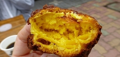 あじさいを見た後は延岡を素通りして、ランチを食べに佐伯へ向かいました。 ![]() 途中、北川町の道の駅「はゆま」でコーヒー休憩。 ![]() お店の中はペットNGですが、コーヒーは持ち帰りOKなので、外のテーブルで飲むことができます。 ![]() レジのところにオリジナルスイーツのポスター発見。 延岡市内のお菓子の虎屋さんとのコラボスイーツみたいですね。 ![]() オリジナルという単語に弱いちびまる。(^^;) 釣られて買っちゃいました。 ![]() コーヒーは150円。スイーツは通常1袋(2個入り)120円ですが、コーヒーとセットだと220円とちょっとお得になります。 ![]() なかなかおいしかったですよ。これは「南京ぼーい」 中がかぼちゃクリームが入ったミニシュークリームって感じです。 外側はチョコクッキーなのでサクサク。 もう一つは抹茶クリームの入った「お茶々がーる」 まあ、ネーミングについては・・・笑 (^_^;) |