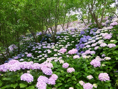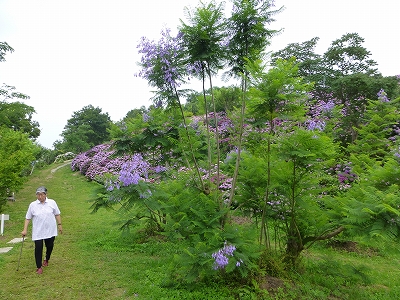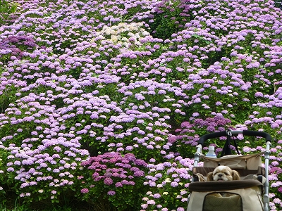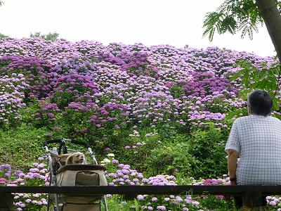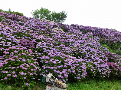 ![]() あじさいがすごいのは言うまでもありませんが、ここの良さはあじさいだけじゃなく、海も一緒に見られることです。 ![]() ちょっと薄曇りでしたからこのくらいの青さですが、晴天ならもっともっともっと青々しい海です。 ![]() そんな海を背景にあじさいを眺めることができます。 ![]() そして、ここがもっともあじさいが見られる場所。 ![]() このあじさいの前には、キャンディたちがのびのび歩くことができるちょっとした広場がありますので、キャンディたちもここの場所は大好きです。 ![]() 広場の下の斜面もあじさいが満開です。 ![]() 是非、下から眺めてください。手前の斜面と奥の斜面のあじさいを重ねて見られて、本当に綺麗ですよ。 ![]() 広場の奥の方にはジャガランタが咲いてます。 ![]() これがジャカランタの花です。 去年は花つきが悪かったですが、今年は綺麗に咲いてます。 県南の道の駅 なんごうのジャガランタも今年は綺麗に咲いたみたいですね。 ![]() この日は暑すぎず、曇り過ぎず・・・ ![]() こうしてゆっくり座ってボ〜っと眺めるのが、とても心地いい、そんな日でした。 ![]() ![]() 今年もみんなであじさいが見られてよかったね。 |