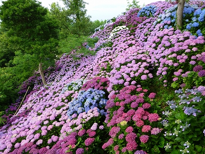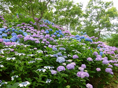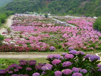 ![]() 展望デッキからは海が一望できます。 ![]() その展望デッキの横は・・・一面にあじさい。 ![]() 展望デッキの下にも一面にあじさい。 ![]() ![]() この展望デッキができる前にはテーブルと椅子があったんですが、その時からこの場所にはこの「墨田の花火」が咲いてました。 ![]() ここはあじさいだけじゃなく桃の木もたくさんあります。 今年は桃の花がとても綺麗に咲いたと聞きました。 ![]() 展望デッキの奥からオッチラオッチラ上に上がっていくと・・・ ![]() 広〜い広場があります。ここもキャンディが好きな場所です・・・が、民家がない自然な場所なので、鹿さんの落し物もたくさんありますのでご注意を。(爆) ![]() 広場を行き止まりまで進んだところに展望台があり・・・ ![]() 駐車場のあじさいを上が眺めることができます。 ![]() 椅子に座り、高い場所からあじさいを眺められるこの場所もオススメです。 ![]() 人が多い時間帯はなかなかこの場所を独占することは難しいかも。(^^;) ![]() ![]() ![]() 上からあじさいを満喫したら、左の下り坂を歩いて行きます。 ![]() こちら側は青系のあじさいと・・・ ![]() ![]() ガクあじさいが多く咲いてます。 ![]() 駐車場前では色落ちしていたオタフクも、ここでは綺麗に咲いてました。 ![]() 坂を下ったところの「オオバネムノキ」 普通のネムノキがピンクの花を咲かせるのに対して、オオバネムノキの花は天使の羽根のように真っ白です。 ![]() 最後に入口のすぐ横にある「スイレンの池」 ![]() スイレンの池の前は芝生になっていて、パラソルとテーブルがあり、休憩できます。 今年は美郷町北郷の Cafe&goods Tali Kasih(タリ・カシ)さんが晴れてる週末限定でお店を出してるそうです。 ![]() ![]() 入口であじさいの苗の販売をしてるんですが、今年は「十二単」という品種のあじさいを買いました。 晴天ではなかったので、海が少し霞んでましたが、この時期にすると気温は高くなく、日差しも弱かったので、犬連れには最適の天気だったと思います。 |