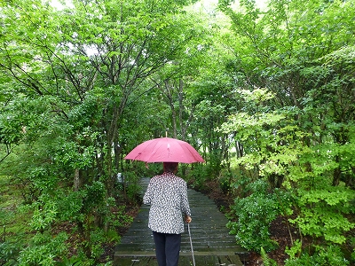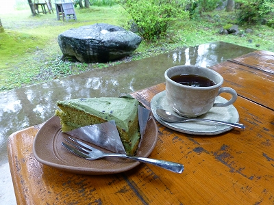 ![]() 手作りのオーガニックケーキを食べに「山荘みれがつか」へ。 ![]() 今回、母を一番連れてきたかった所です。 ![]() 門をくぐり・・・ ![]() 緑の中を歩いていた先にレストランがあります。 ![]() ![]() 軒が広いので雨が降っても平気です。 ![]() 緑がとても鮮やか。 ケーキを食べるというより、ここでゆっくり過ごすのが目的だったんですが、残念ながら雨。晴れていれば木陰を散策できたんですけどね。 ![]() 奥様が「晴れもいいですけど、私は雨のしっとりしたこの景色、好きですよ。」とおっしゃいました。確かに。(^^)v ![]() テラスに座って雨音を聞きながら、しっとりとした緑を眺めるのも、とても気持ちよかったです。 ![]() この景色を私たちだけで貸切で過ごすなんて、贅沢な時間。 ![]() ![]() おいしいケーキと珈琲でゆっくり過ごすことができました。 ![]() サービスでもらった手作りのカリントウもおいしかった〜 ![]() 散歩できなかったのは残念だけど、雨もまたヨシって感じだね。キャンディ。 ![]() 秋頃、また来ようね。 |