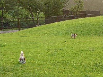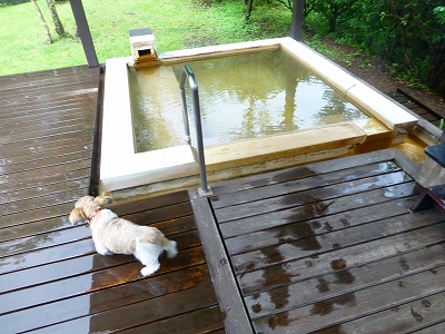 天気予報では翌日はお昼まで晴れ時々曇り、15時頃から雨マークになってました。 夜、露天風呂に入って空を見上げると、星も出てました。 ・・・が、夜中、激しい雨と雷で目が覚めました。 「あらら〜、明日の午前中は雨降らないって言ってたのに・・・」と2日続けてのどんでん返しの天気に文句をいいながら、二度寝へ。 ![]() 翌朝起きてみると、雨は止んでました。 ![]() 夜中の雨が相当激しかったので、芝は濡れてますが 「問題ないさ〜」ということで、ラナも一緒に朝食前にひと歩き。 ![]() 斜面のドッグランにも入ったので、ついでまたブルーベリー狩り。(爆) ひと歩きした後は朝食を食べにレストランへ。 ![]() 雨も上がっていたので、歩いて行きました。(ラナがカート苦手だし) 歩くといっても、キャンディはスリング。ラナは途中まで歩いて、その後はだっこですけどね。(^_-)-☆ ![]() 栗もいっぱい実をつけてましたよ〜 ![]() 朝食です。 ![]() ![]() ![]() この日はキャンディはスリングに入ったまま、椅子の上。 ラナはテーブルの下で待機です。 ![]() 舟をこぎそうなキャンディ。(爆) ![]() 朝食を食べ始めた頃、雨が降り出し・・・ 「カートで帰るしかないかな?」とあきらめかけた頃、雨が小雨になりました。 カート嫌いのラナには、なんとラッキーなことか。(^◇^) フロントで傘を借りて、熟したブルーベリーをつまみ食いしながら、歩いて部屋へ戻りました。 ![]() 部屋の玄関に着いたら、雨足がつよくなり、再び本降り。 これしかないというタイミングで歩けたみたいです。(爆) ![]() 部屋に戻った後は、母と私は露天風呂へ。 チェックアウト11時までゆっくり過ごしたら、出発です。 |
