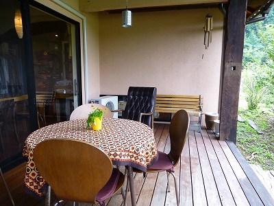 ![]() 2日目のランチは、木陰の「森の時間」か、屋根付きの「いちご一枝」のどっちにしようかと迷って、屋根がある「いちご一枝」に予約を入れました。 ![]() 予約を入れた時は雨の心配は全くしてなかったのですが・・・まさか、天気がこんなにくるくる変わるとはね。^_^; ![]() 小笠原から約50分ほどで南小国町の「いちご一枝」に到着です。 ![]() 店内は靴を脱いで上がります。 ![]() テラス席は2テーブル。 ![]() 奥にはロッキングチェアがありました。 ![]() 食事が運ばれてくるまで、ラナを抱っこして、ゆ〜らゆ〜らと座りました。 ![]() ランチメニューは玄米ドリア、玄米リゾット、カレー、ベトナム風チャーハンの4種類から選べます。 ![]() ![]() ランチにはサラダと前菜とスープがつきます。 ![]() そして、母はベトナム風チャーハン。 ![]() チャーハンにはお好みでソースをかけます。 ![]() 私はリゾット。 午前中は雨の予報でしたが、雨は降らず。 その分、昨日に比べるとちょっと暑くなりました。 お出かけの時に雨が降るのってあまり好まれませんが、夏は雨が降った方が楽ってこともありますね。^_^; ![]() テラスの前の木にたくさん実がなっていて・・・ ![]() よくよく見るとサッカーボールというか、ちょっと変な実。(爆) ネットで調べてみたら「ヤマボウシ」だそうです。こんな実がなるんだ〜 もう少しすると赤オレンジ色に熟すみたいですよ。 ![]() 花は知ってますが、こんな実がなるのは知りませんでした。 ![]() ランチはデザート付。 ![]() 冷たくておいしい〜 ![]() ![]() ![]() 奥様から貸してもらった万華鏡から見える模様がとても綺麗で神秘的。 珈琲を飲みながら 「こういう柄の布があったら、おしゃれなのに〜」と思いながら、ほんのちょっとズレるだけで、全く違う模様が見える楽しさにしばらく浸りました。(爆) ![]() ごちそうさまでした。<(_ _)> |