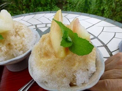 雨が降るか降らないか?の曇り日。 気温もそれほど高そうではなかったので、豊後大野方面に出かけてきました。 ![]() 行く途中、いつものT−Shopで寄り道。 ![]() ゼロ水(と呼ばれる湧水)で作ったコーヒーを飲んで、いざ、豊後大野へ。 ![]() 向かった場所は「豊後有機農園」 新鮮な野菜を使ったランチ(要予約)のパン屋さんですが・・・ ![]() 今はかき氷でちょっと盛り上がってます。(*^_^*) ランチを予約しようと水曜日に電話すると 「桃のかき氷が地元の新聞で掲載させて、少しバタバタしそうなので しばらくの間、ランチの方はお休みさせていただいてます。」 ということで、野菜たっぷりのランチはダメだったので、おでかけ自体を止めようかな〜と思いかけたのですが、かき氷は今の時期しか食べられないし、天気も曇りがちで気温もそう高くなさそうだったこともあって 「かき氷、食べにいくぞ〜」と来たというわけです。(^^ゞ ![]() そして、これがその新聞に掲載されたという桃のかき氷(右)。 左は梨のかき氷です。 ![]() 清川町と言えば「桃」 その特産の桃はトッピングされているだけじゃなく、氷の中にも入ってます。 もちろん、ソースも桃です。(^^)v ![]() こちらは梨。梨のかき氷って珍しくないですか?(*^_^*) ![]() 氷の中には梨の果肉たっぷり。 梨はさっぱり、桃は自然な甘みたっぷりで、二つともとてもおいしかったし、ここでしか味わえない氷かも? 他にブラックベリー、ブルーベリー、スイカ、メロン、抹茶金時。 そして、新作には、私が食べた梨、それから葡萄と野いちごがあります。 ブラックベリーは真っ赤な色合いがとても綺麗だったし 唯一、果物系じゃない抹茶金時も濃く綺麗な抹茶色の氷です。 見るからにおいしそうでした。 ![]() この日に訪れていたお客様のほとんどは氷目的だったみたいで 店内よりテラス席の方が多かったので・・・ ![]() この日は我がままにも、ガーデンの中にある小さなテーブル席でいただきました。(^^ゞ ![]() 花が好きな母はゆっくり花を見ることができますし・・・ ![]() キャンディやラナを気軽に歩かせることもできます。 ![]() ![]() シロップはキビ砂糖、てん菜糖、有機レモン果汁など、身体に優しい甘さを・・・ と考えて作っているそうです。 そして、かき氷の氷は稲積鍾乳洞の天然水を二日間凍らせて使われています。 だから、一日に出せる数に限りがありますし、季節の果物もストックがなくなったところで終了だそうです。 今のこの時期しか味わえない旬の果物と夏の風物詩のかき氷に大満足です。(^◇^) |