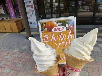 この日のランチは風の里のすぐ近くの「ゆうど」を予定していました。 途中、オニパンに寄って、パンを買って、行ってみると、駐車場には車がいっぱい。 テラス席は1つ空いていましたが、おなかもそんなに空いていなかったこともあって、パスしました。 実は・・・^_^; 昨日、食べきれなかったおはぎを朝、食べたもんで、全然おなかが空かない。^_^; ![]() 元々、帰りに豊後有機農園で氷を食べて帰る予定していたし、氷食べて帰ればちょうどいいか?ってことで、帰りは明礬温泉を経由して、別府ICから高速にのり、豊後有機農園へ到着。 ![]() 今年最後の氷かな。 ![]() 母は今回も桃。トッピングの桃はもう品切りなので、かわりにいちじくが乗ってます。 ![]() 私はぶどうと悩んだ末にブルーベリーにしました。 色が鮮やか〜ちょっとほろ酸っぱい感じでおいしかったです。 あと、お昼は食べてなかったので、ロールサンドを一つ食べました。 延岡への帰り道、少し眠くなったので・・・ ![]() 「はゆま」に寄って、ちょっと休憩しました。 そういえば・・・伊勢えびを食べた時にサービス券をもらっていて、佐伯や延岡の道の駅で出すと何かくれるという話だったので、はゆまで使ってみたところ・・・ ![]() ソフトに化けました。(*^。^*) 左が日向夏ソフトで右がきんかんソフトです。 なんか、最初から最後まで冷たいものばっかり食べてるような気がしますね。^_^; |