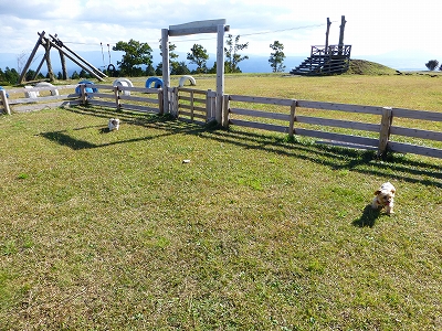 帰り道、あざみ台展望所へ寄り道です。 ![]() 濃霧の昨日とは打って変わって、晴天です。 ![]() 階段登った左の方に小さな小さなドッグランが出来ているので、キャンディとラナ連れて入ってみました。 ![]() 高台で風が通って気持ちがいいせいか、いつもはドッグランに入ってもほとんど動かないラナがここではよく動きました。 ![]() ![]() ラナがランの中をあっちいったり、こっち行ったりするのって結構、珍しいことなんです。(爆) ![]() 山頂付近は紅葉してます。 あと10日〜2週間くらいすると、ふもとの方にも紅葉を下りてきそうです。 ラナは10月18日で10歳になりました。 キャンディだけじゃなく、ラナもしっかりシニア世代です。 10歳なんだから、もう少し落ち着きが出てもいいんじゃないか?(爆)とは思うんですが、いつまでたってもパニック犬のラナです。 キャンディは16歳と8ケ月。 今でも一緒にこうしてお出かけできることが何よりうれしいです。 |