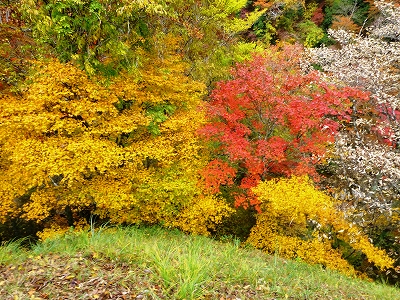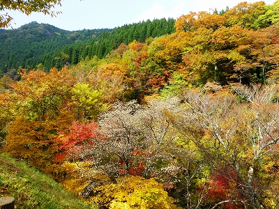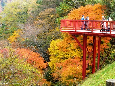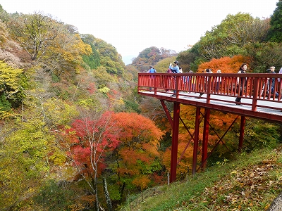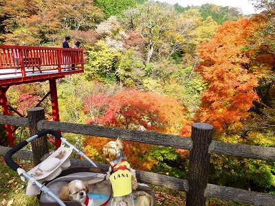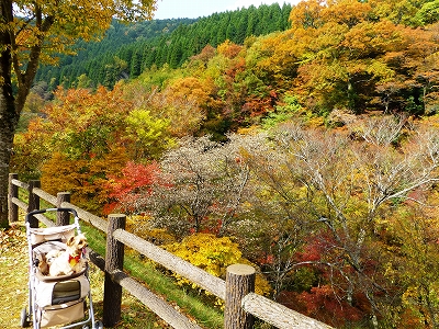 朝から珈琲を飲むことができなかったのと、待てど暮らせど珈琲が出てこなかったことで、母のイライラは爆発しそうでしたが、この後、句庵でぜんざいを食べる予定にしていたのでなんとか、噴火せずにすみました。(爆) ![]() 先に句庵に寄ってもよかったのですが、紅葉見とトイレ休憩も兼ねて、先にあいのせ茶屋へ行きました。ここへ寄るのもちびまる家の定番になりつつありますね。(^^ゞ ![]() 去年も感じたのですが、展望デッキ正面の木々が年取って、葉がついてません。3年くらい前まではデッキ正面は真っ赤な葉っぱでいっぱいだったような気がするのですが・・・ ![]() デッキ下の木々は綺麗に紅葉していますが・・・ ![]() なので、今年はデッキまで行きませんでした。 ![]() 私的にはデッキで見るより、サイドから見た方が綺麗なような気がします。 (それか沢の下の方に下りてみるか・・・) ![]() ![]() ・・・と言っても、全体的にはまだまだ立派な紅葉スポットですけどね。(^_-)-☆ |