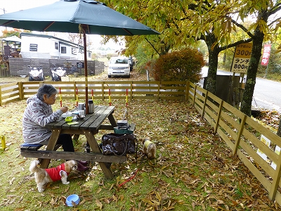久住ロードを出た後は牧の戸峠を通り、九重町へ向かいます。 ![]() 緑色だった道は、一面、秋色です。 途中、工事で片側通行になっている箇所があり、いつもならイライラするところですが、この日は全然平気。逆にゆっくり山を眺めて、こうして写真を撮ることができて、うれしいくらいです。 ![]() ![]() 牧の戸峠を抜けて、長者原から左に入り、キャンパーズ・キッチンへ到着。 ![]() ダッチオーブンなどのキャンピング調理のランチがアウトドア感覚で食べれるトレーラーハウスを改装したお店です。 ![]() 小さめですが、ドッグランもあります。 ![]() ドッグラン内にもテーブル(ちょっと年季が入ってますが、サブトンを用意してくれるので座るのには問題ありません。)があり、ラン内で食事することもできます。 ただ・・・道路に面した場所にあるので、音シャイのわんこは横を走る車やバイクの音で少し落ち着かないかもしれません。うちのラナは特にバイクの音が苦手なので、少しパニくりかけてました。(-_-;) ![]() 1000円でレンタルバギーがありました。かっこいいですね〜 ![]() メニューはホットサンドのランチや、スペアリブ、ハーブの香り際だつジューシーチキンやトマトカレー、カレードリアなど。 ![]() ジューシーチキンはこの薪オーブンで作られているそうです。 ![]() カップやお皿、全て一流アウトドア用品らしいのですが・・・アウトドアの知識が全くない私にはよくわかりません。(爆)。 ![]() ![]() ジューシーチキン。トマトスープ、パンorライスのセットです。 ![]() チキンは柔らかくてジューシーでおいしかったのですが、うちの母はハーブの香りが逆にちょっと苦手だったようです。(^_^;) ![]() カレードリア。ジューシーチキンも乗ってます。 ![]() キャンディはドッグランの中を好きに歩き回ります。 ![]() 大自然に囲まれて過ごす時間は、この上ない開放感だったのですが・・・ 食事が済んだ後、珈琲がなかなか出てきません。 祝日ということもあり、お客さんも多い、それをオーナーさんが一人でやられているので、離れた席に私たちまで、なかなか目が届かなかったんだろうと思います。 私たちより後から来た方の方がランチを済ませて帰られていきました。 ![]() この日は寒くはなかったのですが、ドッグランのテーブルは木陰だったので、ただ座っているだけだと肌寒くなってきました。パーコレーターにかけて自分で作る珈琲を楽しみにきていたのですが・・・これ以上、待たせると母の機嫌が悪くなりそうだったので、帰ろうとした時に 手巻きのミルを持ってきてくれました。 「せっかく、持ってきてくれたから、やっぱり飲んで帰ろうか?」 と豆を挽いて、しばらく待ちましたが・・・やはり時間がかかりそう。 ・・・ということで、珈琲は飲まずに会計をして帰ることにしました。(母の機嫌もギリギリだったので) 正直、この珈琲を楽しみに来たようなものだったので・・・ちょっと残念でしたが仕方ありません。 トレーラーハウス横のテラス席だったら、すぐに珈琲が飲めたんだろうと思います。 珈琲は食事と一緒か、先にもらった方がよさそうです。^_^; |