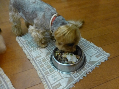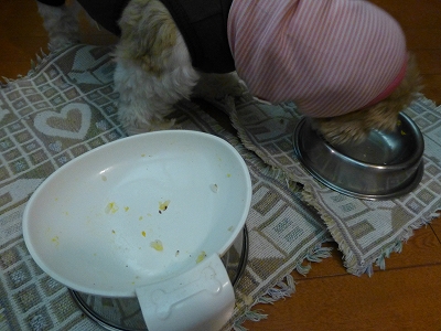 散歩したり、温泉に入ったり、お昼寝したりしていたら夕食の時間となりました。 ![]() まずはキャンディとラナのお食事。宿のサーロインステーキ(ハーフ)を注文。 ラナが下で狙ってます。(爆) ![]() これと持参した馬肉団子と大山鶏むね肉のポトフ(しじみ汁煮込みです)を二等分しました。 ![]() ラナの食べる速度が速いこと!速いこと。(爆)おいしかったんでしょうね。 ![]() キャンディは宿にあるペット用のフード皿を裏返しにして台代わりに使わせてもらいました。これがちょうどいい高さで。(^^ゞ ![]() キャンディは食べる速度が遅いので、ラナが完食したずいぶん後に食べ終わりましたが、見事、完食。しかもそのあと、ラナのお皿の確認もしてました。高齢になっても食欲は変わらないので飼い主としてはうれしい限りです。 ![]() この冬、キャンディには、体が冷えないようにつなぎ洋服を着せ始めました。 床暖房の室内ではこれでちょうどいいですが、外に出ると寒いので・・・ ![]() 上からベストをあわせます。 ![]() ラナと色違いのお揃いです。 ![]() ラナたちの食事が終わった後は、夕食を食べに食事処へ。 ![]() この日のメニューです。 ![]() この日のお造りは岩魚です。 私だけ馬刺しを別メニューに変えてもらいました。 ![]() ラナは私のとなりの席に・・・ ![]() キャンディはすでにネムネムだったのでスリングに入りました。 ![]() 鱒と百合根の柚子味噌焼 ![]() 山芋かりんと揚げ 小茄子・ししとう。揚げたてのアツアツでサックサク。 ![]() 菊花蕪餡かけ。とてもかわいくて、綺麗。 ![]() そして、阿蘇王ロース。 ![]() 最後はデザートの苺のシューケーキです。 ![]() 帰りは珈琲を部屋に持ち帰って飲みました。 ![]() ラナは撃沈だったので・・・ ![]() キャンディだけ、ちょっとだけ夜のランへ。 ![]() そして、夜も更けていきました・・・ ![]() ![]() とさ。(^−^) おやすみなさい。 |