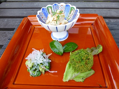![]() ランチは垂水公園のすぐ近くの「カフェ松本」にしました。 ![]() ![]() 人気のカフェなので、ランチする時は予約した方が間違いないです。 ![]() テラス席はわんこOK。お店の方も犬好きのようで、とても優しく接してくれます。 ![]() テラスの横には紅葉もあります。秋もいいでしょうね〜 ![]() テラスからの眺めです。田植えが済んだ田んぼと山が清々しかったです。 ![]() ランチメニューは週替わりランチや ![]() ヒレステーキやタンシチューのランチメニューがあり、他、定番のカレーやハンバーグ、パスタもあります。ランチとしてはちょっとお高めなので、お財布が厳しくなりそうです。(笑)(^^ゞ ![]() 母はヒレステーキ。(但し、この日はヒレではなくサーロインでしたが。) ![]() ヒレステーキセットにはスープと ![]() サラダが付きます。 ![]() 母はパンを選びました。 ![]() たっぷりのバターにちょっとびっくり。(^v^) 私は週替わりランチに前菜がつく、スペシャルランチにしました。 ![]() まずは前菜三品。 金柑の白和えとほうれんそうのお団子、菜の花とアボガド・・・だったと思う。(^^ゞ ![]() 私のスープはお抹茶茶碗に入って出てきました。 ![]() そして、メインの鰆の蒸し葱ソースかけ。 ![]() ライスはソバの実、押し麦、紫米、グリーン豆、餅キビなどを含んだ五穀米。 ![]() プラス小鉢が2品とサラダが付きます。 ![]() ![]() 母はデザートにプリン。 ![]() 私は焼きチーズ。 ![]() 飲み物は二人とも珈琲にしました。 ![]() 食事が終わって帰る頃、キャンディの背中にチラホラと何か落ちて来ました。 ![]() 春ですね♪ ![]() 駐車場に出てくると車がいっぱいになっていて、びっくりしました。(^^ゞ |