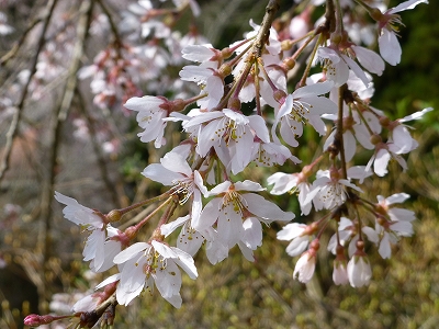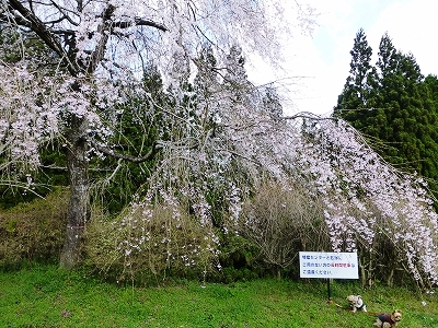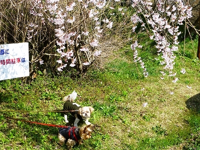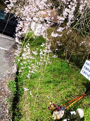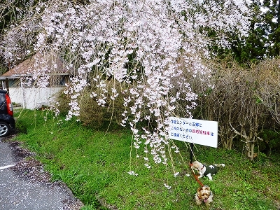 4月6日、阿蘇の桜を見に出かけました。 阿蘇は何度も行ってますが、実は母やキャンディ・ラナ連れで桜を見に行くのは初めてで、かれこれ25年以上前に「一心行の大桜」に来て以来です。^_^; ![]() 今回は五ヶ瀬町を経由して行きました。 ![]() 延岡はすっかり葉桜になりましたが、五ヶ瀬町はまだまだ見頃。 ![]() 延岡や宮崎とは1週間から10日くらい、見頃の時期に差がありそうですね。 ![]() まずは第1桜ポイント。五ヶ瀬町 浄専寺のしだれ桜。・・・だったんですが、駐車場が隣の三ヶ所神社のへ誘導していたので、パスして車窓から眺めました。 ![]() ちなみにこの写真は浄専寺のしだれ桜ではなく、浄専寺近くのしだれ桜です。(^^ゞ ![]() 阿蘇へ向かう道路も桜が満開。 ![]() まずは特産センター五ヶ瀬で休憩です。 ![]() ![]() 五ヶ瀬町のしだれ桜は他に原田家や岡田家が有名ですが、特産センター五ヶ瀬のしだれ桜も綺麗ですよ。 ![]() 駐車場に2本、立派なしだれ桜があります。 車も停めやすいし、買い物もできるし、トイレも使えるし、人は少ないし、手に取るように桜を見ることができるし・・・。自分的にはおススメのポイントです。 ![]() ![]() 買い物中の母を待つ2匹です。(爆) ![]() しだれ桜は遠目に見ると、ソメイヨシノより儚げというか、おとなしそうな印象を受けますが、近くで花そのものを見ると、ホントかわいらしい花です。 ![]() しだれ桜の花を間近で見たのは初めてだった母は「しだれ桜って近くで見ると、とってもかわいい♪」としだれ桜を見直してました。 ![]() 風が吹くと枝が風に流されて動く姿もソメイヨシノにはない良さを感じました。 ![]()