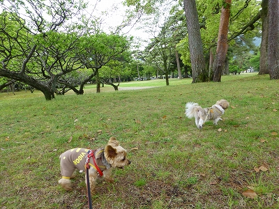 毎年恒例の年に一度の検診で4月30日、別府へ行ってきました。 ![]() 血液検査、エコーなどの予診までは母に付き添い、そのあとはキャンディとラナを連れて病院の目の前にある別府公園へお散歩に行きました。 ![]() 母の主治医の診察が終わるまで公園内で息抜きです。 ![]() 桜満開もいいですが、その後の新緑の公園も気持ちいいですね。 ![]() ![]() ラナ「風が気持ちいいでしっ♪」 ![]() 「さあ、歩きますか?」 ![]() 公園内の梅の木は梅の実がこんなに大きくなってました。 ![]() ハナミズキや ![]() ヤマボウシもきれいに咲いてます。 ![]() しばらく公園内であちこちしていると、雨がポツポツ。 ![]() 濡れるほどではなかったのですが、とりあえず、公園内の藤棚へ移動。 ![]() 藤の花はもう少なくなってましたが、藤棚の上の方はまだまだ綺麗に咲いてました。 ![]() 傘が必要なほどの雨ではなかったので、もうしばらく公園で過ごしてもよかったのですが・・・ ![]() キャンディがそろそろ眠たくなりかけてきたようだったので、車に戻ってお昼寝しながら、母の診察が終わるのを待つことにしました。 ![]() 公園から車に戻る時は、カートのフードは下ろして移動してます。(^.^) ラナのように小心者の怖がりさんは人や車の多い場所ではフードを下ろしていた方が落ち着くようです。 ![]() 車の中ではキャンディはよく寝てくれたのですが、ラナは母が戻ってくるのを見逃していけないとばかりに、ず〜っと見張りを怠りません。(^_^;) 車に戻ってしばらくすると、雨が本格的に降ってきました。 早めに車に戻ってよかったね。 |
