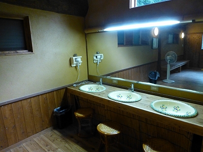 ![]() ここが管理棟です。 ![]() ![]() 管理棟の横にあるのが建物が星生倶楽部本館。 ![]() ![]() 本館の地下には家族風呂があります。 ![]() うちは見学だけさせてもらって、実際に利用はしませんでしたが ![]() 家族風呂という広さじゃないですね。他のホテルだったら、これ、大浴場っていうと思います。(爆) ![]() 本館の奥にあるのが露天風呂です。 ![]() 時間内であればいつでも自由に入ることができます。貸別荘の鍵と一緒にここの扉の鍵ももらいますので、鍵を開けて中に入ります。 ![]() そこから階段を下りて・・・ ![]() トンネルみたいなのを通った先に ![]() 男湯、女湯も案内板があります。 ![]() こちらが男湯。 ![]() そして、こちらが女湯。 ![]() 沢のせせらぎの音が聞こえる最高のローケーション。 ![]() 大きな温泉旅館のように宿泊者が大人数というわけではないので、これだけのお風呂なのに他の宿泊客と遭遇することはほとんどなく独り占めできました。なんという贅沢。(^_-) ![]() ![]() 貸別荘から露天風呂はちょっと離れていますが、ペットOKの棟はその中でも一番、近い場所にありますので、露天風呂に歩いていくには一番楽だと思います。 食事はレストラン(ペット不可)やバーベキュー広場でバーベキューをするか・・・ ![]() (ここがバーベキュー広場) 松花堂御前、鍋、ホットプレートでの焼肉ならお部屋でもいただけるようです。 |