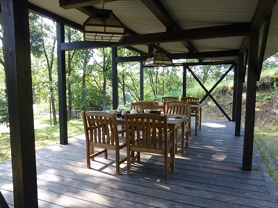 ![]() 翌日も晴天。 ![]() 気持ちのいい朝です。 ![]() 朝食前に湖周辺を散歩しました。 ![]() 湖の向こう岸には縁結びの神様が祭られているようですね。 ![]() ![]() ![]() ログハウスから少し歩いたところに吊り橋(と言ってもコンクリートの橋です)があったので・・・ ![]() ![]() そこまでお散歩しました。 ![]() 朝食はこちらの「食事処 川瀬美」でいただきます。 ![]() 朝食はテラス席ならペット同伴OKです。 ![]() ![]() 屋根付きなので、多少の雨降りは問題ないと思います。 ![]() こちらが朝食。 ![]() 魚はエノハの一夜干しです。 ![]() 自家製のハム。 ![]() 卵はこだわりの卵らしく「卵を割って色を見てみてください。色が違いますよ。」と言われました。 写真じゃわかりにくいかもしれませんが、ホントに卵の黄身の色が濃いです。溶いた後も黄色じゃなくて濃いオレンジ色って感じで。私、そのまま食べちゃいました。 そして、白ごはんのおいしいこと! ひさしぶりに宿の朝食でおかわりしました。 ![]() 母は着いた当初は「もう、ここはいいかな〜」と言っていたんですが、帰る頃には「ここも悪くないわね〜。意外にお母さん好きかも。」とコロっと変わっちゃいました。 唐揚げとご飯の力は大きいですね。(笑) ![]() そうそう、母屋の前には広場があるんですが・・・ ![]() 山羊さんたちがのびのび遊んでますよ。 |
