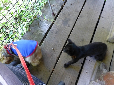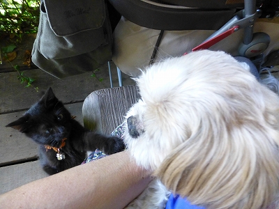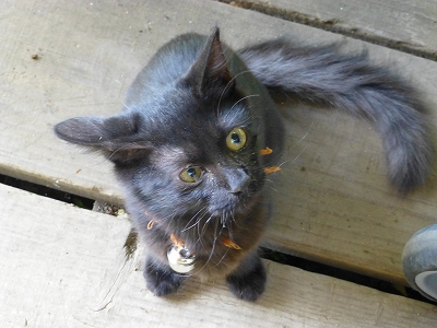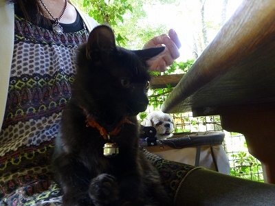 ![]() 1日目のランチは小国町のリトルカントリーへ。 ![]() 前回はお茶だけだったので、ランチするのは初めてです。 テーブルに着くと・・・ ![]() 小っちゃくてかわいい子が近づいてきてくれました。 ![]() かわいい〜 ちょうど2ケ月くらいみたいです。 ![]() とても人慣れしているので、抱っこも全然嫌がりません。 ![]() 黒猫ちゃんは特にラナに興味を持ったみたいで、ラナが行くところ、行くところについてきました。 ![]() ラナが抱っこされると「下に降ろせよ〜」と言わんばかりに下からちょっかいを出します。(爆) ![]() ラナが相手をしてくれなくなると、次はキャンディの方へ。 下からちょいちょい手を出すのが、とってもかわいくて。(#^.^#) ![]() ![]() ランチはパンシチューをいただきました。 ![]() (穴開けてから、写真撮ってないのに気が付いた。(^_^;)) 窯から出しだばかりなのでアッツアツです。 ![]() ランチを食べた後は、お庭で少し遊ばせてもらいました。 ![]() ニャンコは「どこに行くの〜」と私たちの行き先を追ったり。(笑) ![]() ![]() ![]() こういう場所は気持ちいいね〜 パンを買って・・・ ![]() さて、帰ろうかと思ったら、黒猫ちゃんが名残惜しそうに見送りに来てくれました。 ![]() そして、カートの下を占拠。(笑) ![]() 黒猫ちゃんに後ろ髪をひかれながら、リトルカントリーを後にしました。 次来た時は、きっと立派な大人猫さんに成長してるんだろうな〜 |