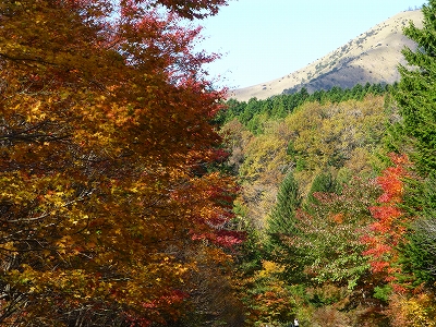 11月3日、天気がよかったので、毎年恒例の久住高原ロードパークへ紅葉狩りに出かけました。 ![]() まずは道の駅 宇目の駐車場で停車。 ![]() 延岡市内のイチョウは、まだまだ緑色ですが、宇目は綺麗な黄色です。 次に停まったのは、道の駅清川。 ![]() 3連休の前半はお天気がいまいちだったからか? てるてる坊主がずら〜っと並んでました。(笑) ![]() そして、久住へ。 ここまで来ると、気温が違いますね〜 延岡の最低気温が最高気温くらいですから、無理ないですが。(#^.^#) ![]() 母がごまソフトが食べたいというので、母はごまソフトを。 私は秋らしく、栗アイスを食べ、いざ!紅葉狩りへ。 ![]() 今年の見頃は29〜31日くらいだったかな。 ![]() まだまだ綺麗な紅葉でしたが、落葉して裸ん坊の木も多く目につきました。 ![]() 天気のいい3連休最後の日ということもあり、いつもに比べると車が多かったです。 久住高原ロードパークを出た後は、筋湯温泉を通り、長者原をぐるっと回って、紅葉ドライブしました。 発電所あたりはちょうど見頃だったですね。 ![]() 泉水のすすき群は少し終わりかけではありましたが ![]() 抜けるような青空とキラキラ光る太陽の光のおかげでとても綺麗に見えました。 ![]() そして、私が好きな紅葉スポットはこちら。 橋の下のの紅葉がとても綺麗な場所です。(今回は車を停めずに眺めただけ) ご存知の方も多いので、そこそこ横付けする車も多いですが、車の数は夢大橋と比べたら、ゼロと言ってもいいくらい。(笑) でも、紅葉の見事さは夢大橋にも負けないと思いますよ。(^_^)v 九重町をぐるっと一周したら、ランチを食べに南小国へ向かいます。 |