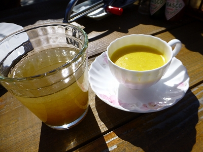 ![]() この日のランチは南小国のプチトマト。 ![]() ![]() テラス席はペットOK。 ![]() テラスは玄関側と建屋裏の2箇所あり、建屋裏の方は屋根付きになります。 ![]() 但し、建屋裏のテラスは外から入れず、玄関から入ることになるのですが、犬は店内を通れませんので、犬だけ外から連れて行って、人は後から玄関から入ることになります。 ![]() 私たちは日当たりのいい玄関前のテラスの方でいただきました。 ![]() 「温まりますから」と奥様が暖かい梅茶をサービスしてくれました。 熟成した梅で作るそうです。 ![]() ![]() サラダとミニスープとデザート、珈琲がつくセットで注文。 梅茶の横にあるのがスープです。この日はかぼちゃのスープ。 ピザとパスタを頼んで、二人でシェア。 ![]() 生ハムとブルーチーズのピザ。 生ハムもこちらの手作りだそうです。 ![]() ベーコンときのこのパスタ ![]() パスタの麺はほうれん草が入ってるそうで、緑のもちもちした太麺です。 なかなか個性的。(#^.^#) ![]() 料理に使う塩は「ピンクソルト」というのを使用しているそうで、テーブルに置かれた塩は「ブラックソルト」というそうです。 「ちょっとなめてみますか?」と言われたので、味見。 「ん?この味は??どこかで??」と考えていると奥様が 「温泉卵のような味がしませんか?」と一言。 そうそう、温泉卵。というか温泉の味って感じ。サラダや白ご飯にかけて食べるとおいしいそうですよ。 チーズはパルミジャーノ・レッジャーノ。お好みでかけて食べます。 とってもおいしくて「足りなかったら言ってくださいね。」と言われたので、思わず追加してもらいそうになりました。(笑) ![]() サラダには槙の木の実が。(写真撮る前に食べちゃった。^^;) 垣根とかに使われる木らしいんですが・・・これが意外においしいかった。(^・^) ![]() キャンディは木漏れ日の中、カートの中で気持ちよさそうに眠ってました。 気温はやや低めでしたが、日当たりがいい場所だったので、ぽかぽかして気持ちよかったんでしょうね。 ![]() デザートは母が頼んだ栗のロールケーキ。 ![]() 私は長野産の紅玉で作ったケーキ。 どちらともベーキングパウダー、バターを使わず、オリーブオイルで作っているそうですよ。 林檎の赤色は皮も一緒に煮詰めた自然の赤色だそうです。 ![]() ![]() ランチを食べた後はキャンディたちを少し歩かせてから、再び、久住高原ロードパークを通って帰りました。 青空の下、楽しくて、おいしい紅葉狩りができました。 |