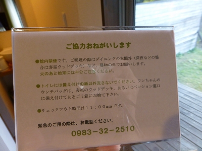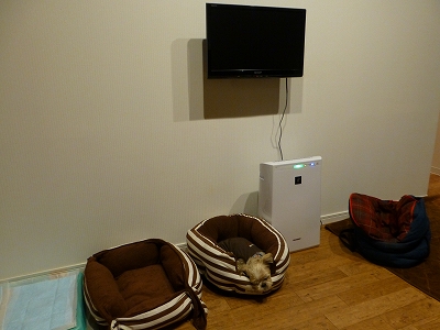 今年からお泊りの時、フローリング用にマットを持参するようになりました。 そうしないと、行った先でキャンディが室内を自由に歩き回ることができません。 ![]() ・・・ということで、ベッドの横には185×185cmのカバー。 そして歩く範囲にピタマットを張りました。 しかし・・・ しばらくして、Wanvinoではマットがいらないということに気がつきました。 マットを敷いていない部分を歩いても、普通に歩いてました。 これは母と二人、とても驚きました。 オーナーさんの話では、一見、フローリングに見えるけど、フローリングではなくクッション性の高い床材を使用しているというお話でした。 ![]() 廊下も歩きやすそうでしたよ。 ![]() 室内の紹介としては・・・部屋のドア横に、リードフック。 ![]() 冷蔵庫内のお水は無料です。 ![]() あと、館内は禁煙です。うちはタバコを吸わないので、関係ありませんが。^^; ![]() 冷蔵庫の下のキャビネットにはドライヤーと湯沸かし器。 ![]() キャビネットには引き出しがついていて、マグカップやお茶、珈琲が入ってます。 ![]() 空気清浄機があるのはうれしいですね〜 ![]() ペットグッズとしては水入れ、コロコロ、ウンチ取り袋、タオルなど、一通り揃っています。 ![]() スリッパは上にあるのが室内用、下の黒いのが館内用になります。 ![]() 濡れタオルも用意されています。犬用の足ふきだろうと思い、使わせてもらいました。 ![]() シンプルな洗面台。 ![]() その横がシャワー室です。 ![]() シャワー室の奥がトイレになるのですが、ご覧の通り、敷居がありません。 お風呂場も敷居がなく、バリアフリー度が高くていいな〜と思いました。 (特にうちのように高齢者連れには安心です。) ただ、一点だけ残念だったのはお部屋のドアです。 ![]() 廊下がやや狭いので、扉が内開きにされたと思いますが、室内と館内の区別をつけるために段差がつけてある分、扉を内側に開くと出入りがちょっとしづらくなります。 できれば、部屋のドアもトイレやお風呂のように開きドアにして、室内と館内も段差をつけずにおいた方が、車椅子での利用も楽になってよかっただろうな〜とは感じました。 ![]() そうそう、TVはBS放送OKで〜す。(^^♪ |