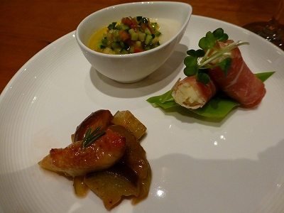 ![]() お楽しみの夕食です。 ![]() 食事はダイニングでいただきます。」もちろん!ワンコも同伴OKです。 ![]() ![]() キャンディはぐっすり眠っていたので、ベッドのまま連れてきました。(笑) ![]() Wanvino ワン+ワインのお宿ですからね〜 やっぱり、ワインはいただかないと。(#^.^#) でも、私は全くワインは詳しくなく、母はワイン好きですが、旅先の地元ワイナリーで作られたワインを飲むだけで、ワインのことは全く知識がありません。 ![]() ということで全面的におまかせして、選んでもらいました。 ![]() ![]() まずは前菜。 ![]() 冷製茶碗蒸し、佐土原ナスといちじくのマリネ、あじ豚の生ハムマッシュポテト巻き ![]() 木城産白ネギの豆乳ポタージュ ![]() 柿のサラダ ![]() アクアパッツァ ![]() ・・・とここでキャンディがお目覚めしたので、抱っこしました。 キャンディの背中にはボンちゃんです。(笑) ![]() 干ししいたけのリゾット へべす風味 ちなみに「へべす」とは宮崎県日向市特産の平兵衛酢のことで、皮が薄くて、種子が少なく、果汁が多い柑橘類です。他の柑橘系と比べて、小ぶりですが、果汁はホントたくさん絞れます。 ![]() 都萬牛のステーキ 都萬と書いて「とまん」と呼びます。 恥ずかしながら、宮崎県人でありながら、都萬牛と食べました。 口蹄疫の苦難を乗り越えたゼロからの出発から生まれた新しい宮崎ブランドの牛肉で、味にこだわり、サシを抑えた赤身の黒毛和牛だそうです。県外のみなさんにも是非、食べてほしいな〜 肉は軽く焼いてあるだけなので、アツアツの鉄板の上で、お好みで火を通します。 佐土原ナス、川南町のゲシュマックのあじ豚の生ハム、木城産白ネギ、日向市の平兵衛酢、都萬牛など宮崎の素材にこだわった食材で作られた料理が次から次へと出てくるのは、宮崎県人としてもうれしい限りです。(#^.^#) ![]() そして、ごはんと自家製みそのお味噌汁 ![]() そして、季節のくだもの ラ・フランスが甘くておいしかったです。 ![]() 地場産の食材で作られた料理をワンコ同伴で食べることが、宮崎県内でできるなんて夢にも思っていませんでした。本当にうれしいですね♪ ![]() 夕食後、ミニランに出て星空を眺めました。明るい照明があるので、夜でも何の問題もなくミニランに出ることができます。 ![]() さあ、そろそろ寝ますか・・・ ![]() いい夢を見てね。 |