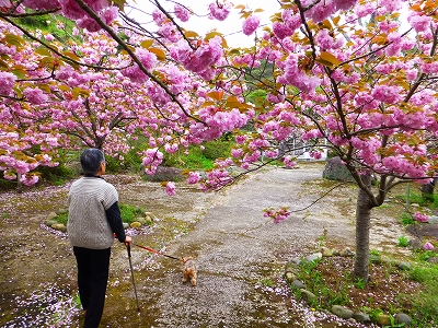 ![]() この時期はお寺全体が桜色に染まります。 ![]() まるで、桜の雲海のようですね。 ![]() ・・・と綺麗な桜を見るのも楽しいんですが、境内の中の出店屋さんで、ラナに串を1本買いました。(味付け抜きで) ![]() 私と母はクレープを食べました。 出店屋さんのクレープのせいか、ダイナミックなクレープで。(笑) ![]() まあ、桜の中で食べれば、なんでもおいしいということで・・・ご愛敬です。(^v^) ![]() 去年はここをキャンディが楽しそうに歩き回りました。 ![]() 今年はボンちゃんが変わって、桜と一緒に写真に写ってくれます。 ![]() こうして見てると・・・キャンディがいるみたい。(笑) ![]() ラナはこういう場所に来ても、あんまり歩きたがらない子だったんですが 今年のラナはちょっと違ってました。 ![]() 母と一緒にあっちを歩き、こっちを歩き・・・ ![]() 変な話、キャンディが歩いてるように見えて キャンディがラナに乗り移ったんじゃないかって思えました。 ![]() ![]() 一心寺で桜を見るのは今年で4回目ですが、花吹雪が見られる時期に来たのは初めてです。 ![]() 満開手前の時もすごくいいですが ![]() 花びらが舞うのを見られる時期もいいな〜って思いました。 ![]() ラナも終始、ご機嫌です。 ![]() ![]() ![]() ![]() ラナ、ボンちゃん。こんなに綺麗な桜が見られて楽しかったね。 ![]() 帰りは名物の桜餅を買って帰りました。 ![]() (桜餅はこちら) ![]() こちらで販売されてます。 ![]() 母は行き同様、送迎車で送ってもらい・・・ ![]() 私とラナは上からの景色を楽しみながら、歩いて駐車場に戻りました。 今年も本当に見事な桜が見られたことに感謝です。 |