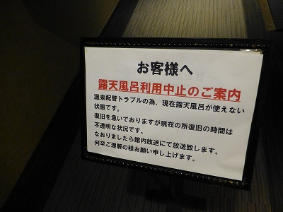 ![]() 大浴場の露天風呂は本館出入口を出てすぐのところにあります。 近くなので、部屋についてすぐに大浴場を見に行きましたが「工事中につき利用中止」の案内が出ていました。 ![]() 「え??改装中?でも、チェックインの時、露天風呂の場所の案内をしたよね??」と意味がわからず、フロントに電話。 すると「本日、配管が破裂しまして、その復旧工事に当たっております。」という返事でした。 ![]() 部屋付露天風呂があるから、元々大浴場に行くつもりはなかったけど・・・ なんで、チェックインの時に説明しないの!!!! <(`^´)> そして、客室案内をしたスタッフが言った「お湯を止めている」という言葉の意味が、初めて理解できました。 しばらくして「復旧しました」とフロントから電話。 「折角だから見学でもしよっかな〜」と再び、大浴場へ。 ![]() でも入口には利用中止の案内が出たまんま。 ![]() 部屋に戻ってフロントに電話すると「一旦復旧したのですが、又、配管に問題が起こりまして、最終確認を行う間、閉めさせていただいております。復旧の目途が立ちましたら、館内放送などでご連絡させていただきます。今しばらくお待ちください。」という返事。あらら。(・_・;) 人用の湯船はお湯が出てますが、ペット用の浴槽の方も温泉出るかな?と思って、カランから出してみましたが・・・水。大浴場が中止になっているのとペット用のお湯が出ないのは関係があるのかしら??と思いつつ、フロントに聞いてみると、やはり、配管のトラブルの影響だと思うから、しばらくお待ちくださいという返事でした。 しばらく経って「コンコン」とドアを叩く音。フロントの方と業者のような方(温泉の調子を確認する方)が現れ「お部屋の温泉の確認をさせてください」と部屋の中に入ってきました。「温泉の配管が破裂して、お湯の供給ができなくなるトラブルが起こりまして・・・」と説明をしてくれましたが、それならどうして、チェックインの時に話さないのか??トラブルは隠したかったんでしょうかね? 温泉の確認には結構、長い時間がかかりました。 「ちょっと時間がかかってますね。」と心配になって、玄関で待機していたフロントの人が浴槽のそばに行きかけたくらい。 ようやく確認が終り「大変、ご迷惑をおかけしました。」とフロントと業者の方が出ていった後、ペット用の温泉を出してみましたが、やはり、カランから出るのは水。(^_^;) ![]() 「ペット用の温泉って、元々、人のお風呂から洗面器ですくって入れるんじゃないの??」と母。 ![]() 「嘘じゃ〜!」と文句いいながら、仕方ないので、人用の湯船から洗面器で温泉をくみあげて、ペット用の湯船に温泉をためて、ラナを温泉に入れました。 そうそう、ペット用のバスタオルが用意してあるのは大変よかったんですが、オープンしたばかりでタオルが新しかったせいか?ペット用タオルは、ほとんど水を吸わず、水をはじきました。(笑) ラナを乾かした後、「もしかして、私の出し方が悪いの?」と何度も赤い印側になっているかを確認して、なぜ、出ないのかがわからず、再び、フロントへ電話。 「やっぱり、お湯が出ないんですが、ペット用の温泉ってペット用のお風呂についているカランから出るわけじゃないんですか??」と質問。すると「いえ、そちらから出るようになってますが、確認しますのでしばらくお待ちください。」と言われました。 10数年前、阿蘇の小笠原で同じように温泉トラブルがあり、部屋まで来て温泉OKを確認した後、夜、全く温泉が出ず、水だったという経験をしているせこともあって「ペット用が出ないってことは、人用の温泉も温泉が出なくなるんじゃないか?」という不安にかられ、お湯が出ている今のうちに温泉に入っておいた方がいいと、フロントからの回答を待たず、慌ただしく温泉に入りました。 私の入浴中、フロントの方がペット温泉を見に来てくれましたが、一旦帰ってもらいました。 「フロントの人に電話する前に、お母さんも先にお風呂に入っておきたい。温泉、いつ出なくなるか不安だし・・・。」と母も入浴。母の入浴中「南館の露天風呂の復旧が完了しました。」と館内放送が流れました。 母がお風呂から上がった後、フロントに電話して、フロントの方が部屋に来ました。そして 「温泉出ます。」とシャワーから温泉が出るのを見せました。 「もしかして、温泉ってシャワーからしか出ないんですか?カランからはお湯は出ないんですか?」と聞くと、サラリと「こちらは水しかでません。」と答えられました。^^; なんか釈然としなくって「だったら『カランから出るのか?』って聞いた時にシャワーからしか出ません』と言ってくれたらよかったのよ。あれって『カラン』って言わないっけ??」としばらく母にぶつぶつ言いました。 母からは「お母さんは『カラン』っていうの知らない。お母さんは『蛇口』っていうから。『蛇口』って聞けばよかったのよ。」と言われましたけどね。(笑) 