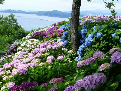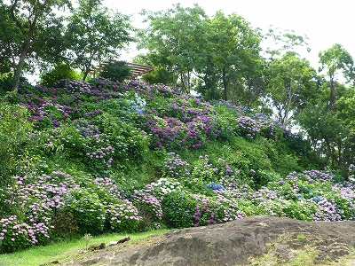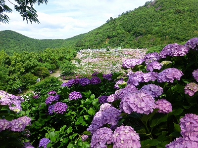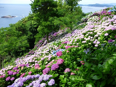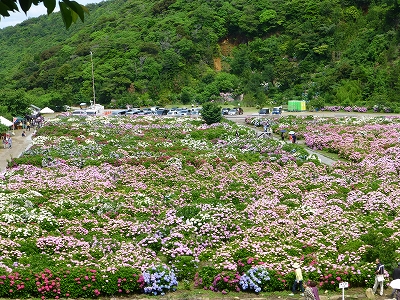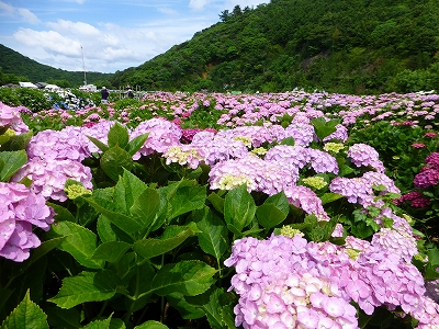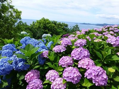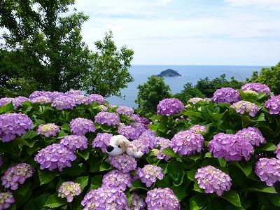 ![]() 見て!見て〜 海と紫陽花が綺麗でしょ。 ![]() 斜面いっぱいの紫陽花が綺麗。 ![]() しかも、色とりどり。(^・^) ![]() 青に紫。 ![]() 奥には海が広がります。 ![]() キャンディ、ボンちゃんと一緒に今年の紫陽花、見てますか?(^・^) ![]() 海にちょこんと見えるのが枇榔島(びろうじま) 天然記念物のカンムリウミスズメの世界最大の繁殖地の島です。 ![]() そして、駐車場の紫陽花を一望できる展望台へ。 ![]() ![]() 一面の紫陽花です。 ![]() ここまで歩いてくると、ラナもハァハァ。(笑) ![]() 展望台はここにあります。展望台の下の斜面も紫陽花もずいぶん育ってきました。 最初は全く何もない斜面だったんですけどね。 ![]() 展望台を降りてから、また紫陽花の中へ。 ![]() 数年前は地元でも「知る人ぞ知る」場所でしたが、今は県外の方も増え、観光バスも来るようになりました。 ![]() 桃源郷岬への道は狭いので、観光バスが入ってくると離合ができなくなるのですが、警備員の方が連絡を取り合ってくれるので心配は要りませんが・・・ ![]() 今年は来た道じゃない、延岡市の土々呂町方面に下りていく道の方へ行くように案内されました。(桃源郷岬の入口から右に曲がる道) ![]() この道、途中からめちゃくちゃ狭くなります。地元の人は道が狭いというのはよく知ってますが、県外から来られる方で道が狭いのをご存知じゃない方はめちゃくちゃ不安になると思いますが、頑張って走ってください。右に曲がる道を案内されないことに越したことないのですが、土日は可能性高いかもしれませんね。 |
