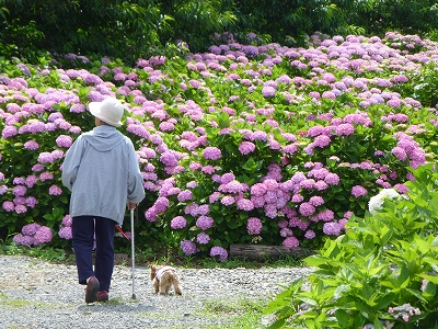 ![]() 今年も隣町の門川町にある桃源郷岬の紫陽花を見に行きました。 ![]() いつもより2日くらい早めですが、梅雨の合間の晴天の土曜日。 これを逃す手はありませんから。(^・^) ![]() 今年から入園料は500円から100円アップの600円へ。 ![]() でも、これだけの紫陽花を見ることができるのは、他にありません。 ![]() この駐車場前の紫陽花だけでも、見事です。 ![]() 駐車場前の紫陽花は園の中でも早めに満開になります。 10日前までがお勧め時期です。 ![]() いざ、紫陽花の中へ。 ![]() 今年で母も80歳。年相応にあちこちが痛いようですが、まだまだ楽しみたいことが多いみたいです。 ![]() 入園料を払う時、連れているのがラナだけなのを見て ![]() 「今年は1匹だけ?」と聞かれたのでキャンディが旅立ったことをお話しました。淋しそうな顔をしてくださったので・・・ ![]() 「17歳と11ヶ月。ホントによく頑張ってくれました。今年は変わりにこの子が一緒です。」と笑顔で「ボンちゃんを紹介しました。(^・^) キャンディを覚えてくださってる方がいてくれる・・・それだけでとても幸せです。 ![]() 去年まではキャンディとラナを乗せてカートで回りましたが 今年からはこんな感じで歩きます。(^_^)v さて、海が見える場所へ行ってみましょうか。 |
