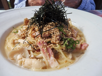 この日のランチは山鹿市にあるこちらのカフェ。 ![]() 平日でも、いつも満席の人気カフェです。 ![]() 古民家の隠れ家的な素敵なカフェです。 ![]() テラス席は2テーブルです。 予約していたので、テラスの奥のテーブルに案内されました。 ![]() 御手拭きもおしゃれ。 ![]() ランチは好きなパスタやリゾットを選びます。 ![]() 母はしめじとベーコンの和風パスタ ![]() 私はきのことベーコンのクリームリゾット パスタ好きの母は「おいし〜い♪」と喜んでくれました。 初めてのお店は行くまでは、ちょっと不安だったりするんですが、おいしいランチを食べることができてよかったです。その上、お店もおしゃれだし。(^_^)v ![]() お店は道路沿いにあって、特にテラスは道路端。 足元には柵がないので、ラナから車が丸見えだったから、かなり心配したんですが・・・^^ ![]() 大型トラックやバイクが横を走ると、何度か反応しそうになったこともありましたが、思った以上に平気で座ってました。 プラス料金でデザート付になりますので、もちろん、デザートをプラス。 いつもだったら飲み物はホット珈琲を頼むんですが、「くろみつ豆乳」がおいしいって聞いていたので、それを頼みました。 ![]() 母は抹茶ケーキ 一口もらったんですが、「これぞ、抹茶!」という感じで抹茶の味がしっかりしていて、おいしかったです。 ![]() 私はチーズケーキ。「cochi」の文字がかわいいです。 駐車場は7〜8台停めらえるので、カフェの駐車場としては広い方だと思いますが、予約する時、車は乗り合わせて来てくれるようにお願いされます。 なんせ、女子が好きそうなお店ですからね。女の子同士だと別々の車数台で来ることもあるでしょうから。 おいしいランチを食べた後は、フェリーで島原へ渡る為に長洲港へ向かいました。 |