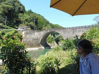 ![]() この日のランチは延岡への帰り道にある美里町のザ キーストンガーデンへ。 ![]() ![]() 隠れ家的古民家カフェです。 ![]() 霊台橋の河川敷にあって「こ、こんなところにカフェが??」って思わず言いたくなるような場所にあります。(笑) ![]() ![]() テラスはパラソル席が数テーブルと東屋がひとつあります。 ![]() ![]() テラス席はペット連れOKです。 ![]() 目の前に石橋の霊台橋が見える最高のロケーションです。 ![]() テラスに座りながら、眺める霊台橋と川の景色は最高です。 ![]() 私は野菜のキッシュ。 ![]() ![]() 母は自家製ソーセージを注文。 ソーセージを少し分けてもらいましたが、おいしかった〜 ![]() ラナはテーブルの下で気持ちよくお昼寝。 きっと、川からの風が気持ちよかったんでしょうね〜 ![]() デザートもセットでいただきました。 ![]() ![]() 母は季節のフルーツタルトにしたんですが、母の大好きないちじくの入ったタルトだったので、とても喜びました。 ![]() さすがに人気カフェ、しかも土曜日ですから、次から次に車が降りてきました。 ![]() まあ、これだけロケーションがよくて、食事もおいしい、お店もおしゃれとなれば無理もないですね。ただ、出入口は急な坂で鋭角に曲がりますから大きな車の方はご注意を。(^_^)v ということで2泊3日の島原・天草の旅が終了です。 天気に恵まれて、楽しい旅ができてよかったです。 |
