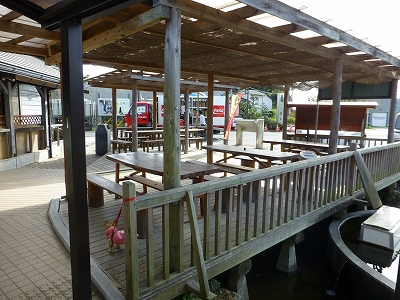 善米食堂の前には大きなテラス席があります。