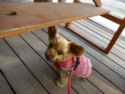 ラナはテーブルの下で待機。