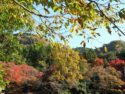宇戸の庄を出た後は国道387号線を道なりに、湯布院へ向かいます。 ![]() 道路沿いの山々は緑と黄色と赤色が楽しめました。 ![]() 途中、日出生ダムへ寄り道。 ![]() 真っ赤というわけではありませんが、結構、綺麗な秋色の景色が楽しめます。 (ちょっと逆光でまぶしかったですが・・・^^;) それから、特に見たいわけでもなかったのですが、「宇佐のマチュピチュ」の前を通るので、物見遊山に寄り道しよう・・・と思っていたのですが、時間的に逆光になるし、思ったより見物に訪れている車も多かった(と言っても数台ですが^^;)ので、パスして、次の目的地の福貴野の滝へ向かいました。 ![]() 駐車場からちょっと歩くので、母とラナには車で休憩してもらい、私とボンちゃんだけ滝に行きました。 ![]() しばらく歩くと大きな紅葉が見えてきます。 ![]() そして、よくわからないんですが、畑にこんなのがありました。 ![]() ここを進んだ先に滝が出てきます。 ![]() 紅葉の見頃には、まだちょっと早い5分というところでしたが ![]() これはこれで、色合いが儚げでヨシとしましょう。 ![]() ![]() 紅葉が真っ赤な時はまた格別なんでしょうが・・・ ![]() 滝からの帰り道に見える山は結構、綺麗に見えました。 ![]() 紅葉を背景にボンちゃんと記念撮影して、湯布院へ向かいました。 |