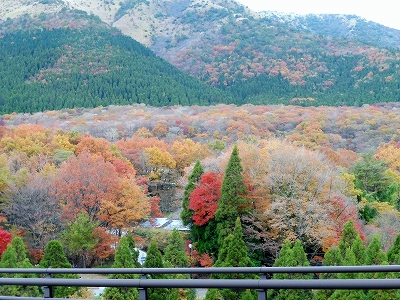 11月8日、9日。紅葉旅行に行ってきました。 出発前日まで、2日とも天気は雨と曇りの予報。(^_^;) 「お天気ばかりはどうしようもないよね。」 と雨具もばっちり準備しましたが、蓋を開けてみると、朝からいい天気になりました。 ![]() 最初の紅葉は道の駅 宇目。 ![]() 今年も綺麗に紅葉してましたが、第二駐車場のイチョウはいつもより落葉が早かったような気がしました。 ![]() 原尻の滝あたりで、気球を見てびっくり。 11月7,8日と14,15日に熱気球搭乗体験(バルーン・ライド)っていうのをやってたみたいです。 ![]() 最初の休憩場所は久住山荘南登山口。 ![]() ラナもしばし、休憩です。 ![]() 山頂に少し雲がかかっていましたが、いい天気。 ![]() 天気予報大どんでん返しの青空です。(笑) でも、以前からこの先の瀬の本で線を引いたように・・・ まるで県境で天気を変えなきゃいけない決まりでもあるように・・・(笑) ![]() 熊本県側は雲が立ち込めます。(雨は降りませんでしたが) 上の2枚は同じ場所に立って、右と左で撮りました。 ![]() 瀬の本までの道のり、紅葉がモザイクのように綺麗。 ![]() そして、瀬の本手前もこんな感じ。 ![]() 紅葉と違って、真っ赤ではありませんが、オレンジや黄色などの紅葉ですが、とても綺麗でした。 ![]() 瀬の本を抜け、黒川方面を走って行くと、一面秋色。 ![]() そして、黒川温泉へ。 ![]() 黒川周辺の紅葉も綺麗でした。 |