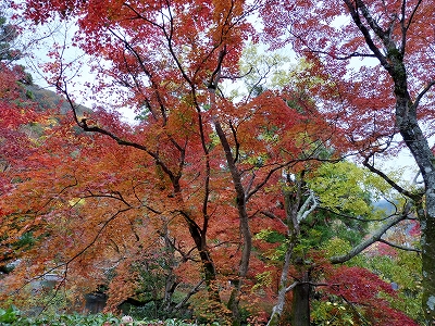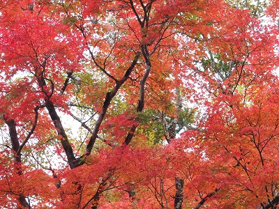 毎年、同じように湯の岳庵の燃えるような赤い景色の中へ入っていきます。
