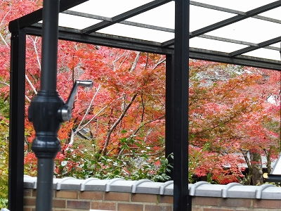 天井桟敷のテラスから眺める紅葉はハズレがありませんね。