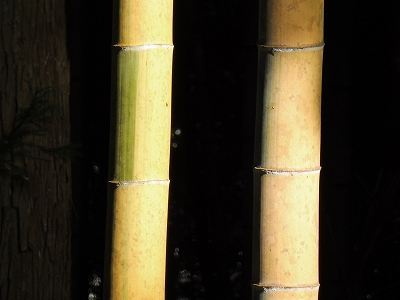 21日 土曜日、天気もよかったので、ドライブがてら、普現寺の紅葉を見に行きました。 ![]() 行く前から予想はついていましたが・・・ やはり、今年の紅葉は残念な感じでした。 ![]() その中で、なんとか色づいてたところだけでも、アップしますね。(^_^;) ![]() 普現寺の紅葉の見頃は毎年22〜26日あたり。 ![]() 11月初旬に最低気温が8℃を下回ることで紅葉するのが通常なんですが・・・ ![]() 今年は11月に入ってから逆に最低気温が10℃以上、しかもそれが2週間近く継続するという近年にない暖かい11月でした。これでは紅葉しなくて当たり前ですね。(^_^;) ![]() 湯布院や小国町は普現寺より冷え込む時期が早いので、11月が暖かくなっても紅葉に影響することはなく、逆に10月中、最低気温が8℃以下、でも日中は20℃という日が何日もあった為、鮮やかな紅葉が見られたんだと思います。 ![]() ん?? じゃ、久住高原ロードの紅葉はなぜよくなかったのか?? 推測ですが、9月から10月にかけての降水量が少なかったことが原因だったんじゃないかと思います。 今年、延岡市役所前のイチョウ並木の木がまだ全然、黄葉の時期じゃないのに、たいさんの葉が落葉しました。残っている葉もなんだか元気がないというか、くしゅっと丸まった葉が多く見られたので、母に「今年のイチョウはおかしい。」と話したことがありました。 今思うと、これも降水量が少なかったせいで、水分が足りず、木が葉を保つことができなかったのかもしれません。 紅葉の見頃時期がずれただけなら、落葉した葉が赤い絨毯のように綺麗に見えるはずですが、落葉の色が赤ではなく茶色ということは、紅葉する前に葉が枯れて落ちたということでしょう。まさしく久住高原ロードはそんな感じでした。 いつもなら、9月、10月に台風で大雨が降りますが、今年はそれもなかったですからね。気温だけではなく、そういうところでの影響も出たんじゃないかと思います。 さて、紅葉を残念がっていたら、地元の方から 「モウソウチクは見たかい?」と声をかけてもらいました。 ![]() 本堂の裏にありました。後で調べてみたら「金明孟宗(キンメイモウソウ)」って言うみたいです。稈が3種構造組織のため、写真のように黄色と緑色に分かれるみたいです。 ちょうど、竹のところだけ陽が当たっていて、スポットライト浴びてるみたいでした。(^・^) ![]() 境内を歩いていると、こんなのを見つけました。 ![]() 「鳥の巣にしては、あまりに綺麗だよね??」と母に言うと 「いろんなもの持ってきて上手に作ったんでしょ?」と母。 そうかな〜?? それにしてもこんなに綺麗に丸く作れる?? ![]() と不思議に思って、ネットと調べてみたら、鳥の巣ではなく 「宿り木(寄生木)」というそうです。落葉樹の木に寄生し、幹から養分などを吸い取って、名前の通り「寄生」して生息する木なんだそうです。 きっと、去年も目にしてたんでしょうが、紅葉ばかりに目が行って、気がつかなかったんでしょうね。(^_^;) ![]() 孟宗竹といい宿り木といい、紅葉していなかったからこそ見ることができた・・・ということでヨシとしましょう。(笑) ![]() 帰り道、みくに屋さんで野菜をどっさり買い込み、2人と1匹で焼き芋をわけあい・・・(^・^) ![]() そして、むぎふくさんでパンを買って帰りました。 紅葉は見られませんでしたが、楽しいドライブができました。 |