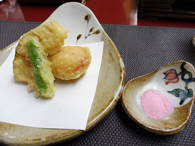揚げ物は山芋かりんとう揚げ 南瓜・ししとう。