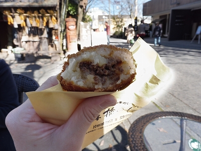 馬ロッケを注文して、揚げあがるのをしばらく外で待ちます。