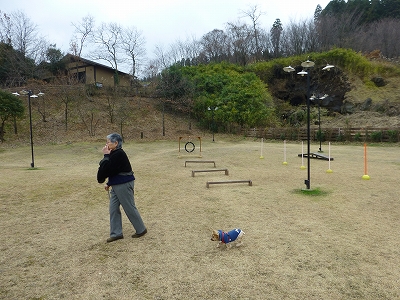 チェックインする前に下のドッグランで少し歩かせてもらいました。