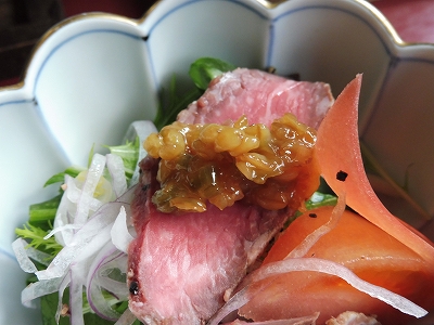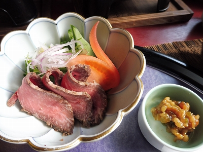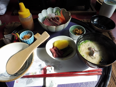 通常は馬刺しがつきますが、宿泊してランチの時は夕食に馬刺しが出るので、別のものに変わります。